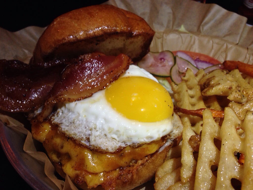 I can’t take credit for eating the burger, but it’s pretty decent from what I can tell in one bite. Juicy. Tasty. All good components in a burger. Plus, a fried egg on top makes everything better. I also loved that your side of fries is a mix of waffle fries, regular fries, and sweet potatoes fries. The best of all worlds!