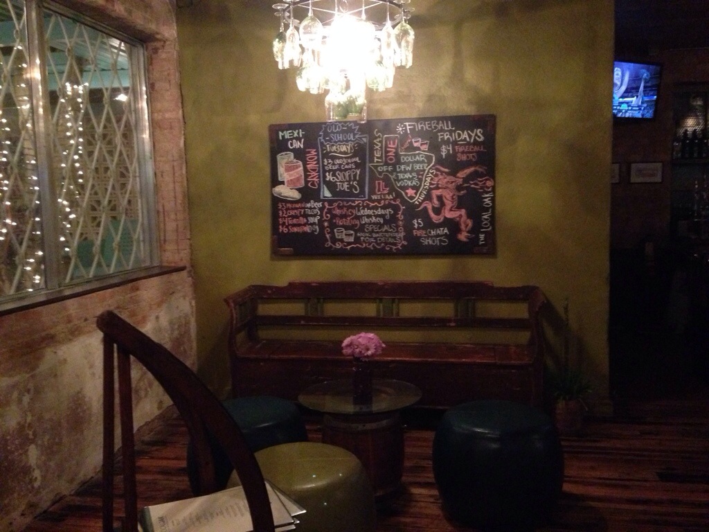 At the excited behest of one of my friends, I went to check out The Local Oak, a stones throw from the Bishop Arts District. This bar has only been open for a few months, but it’s very promising. The venue is spacious and very cute. It has this lovely rustic feel to it and their patio area is something you would want for your own backyard.