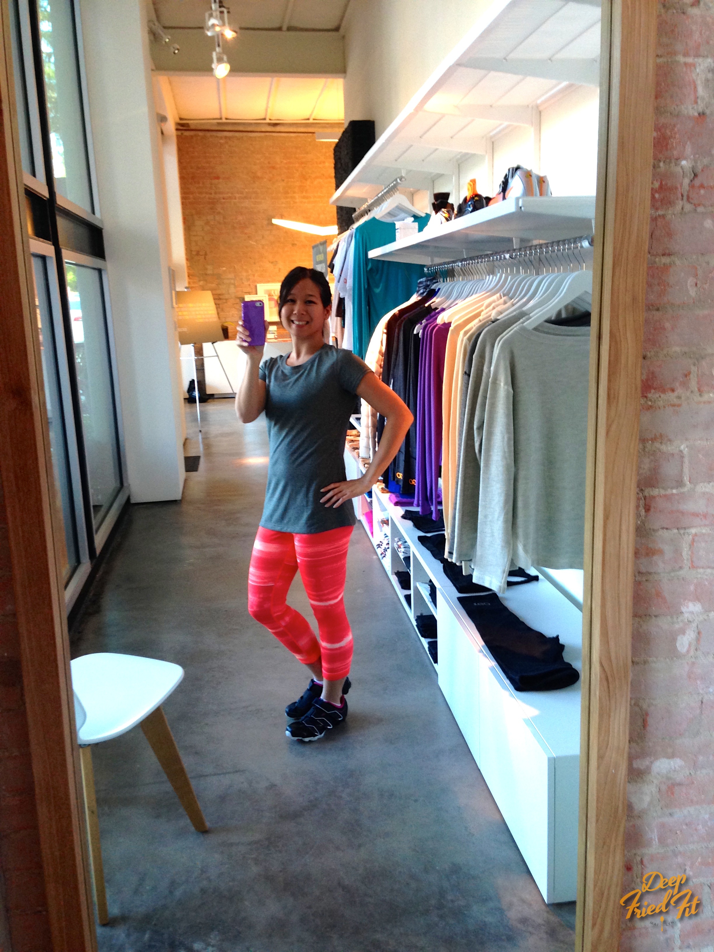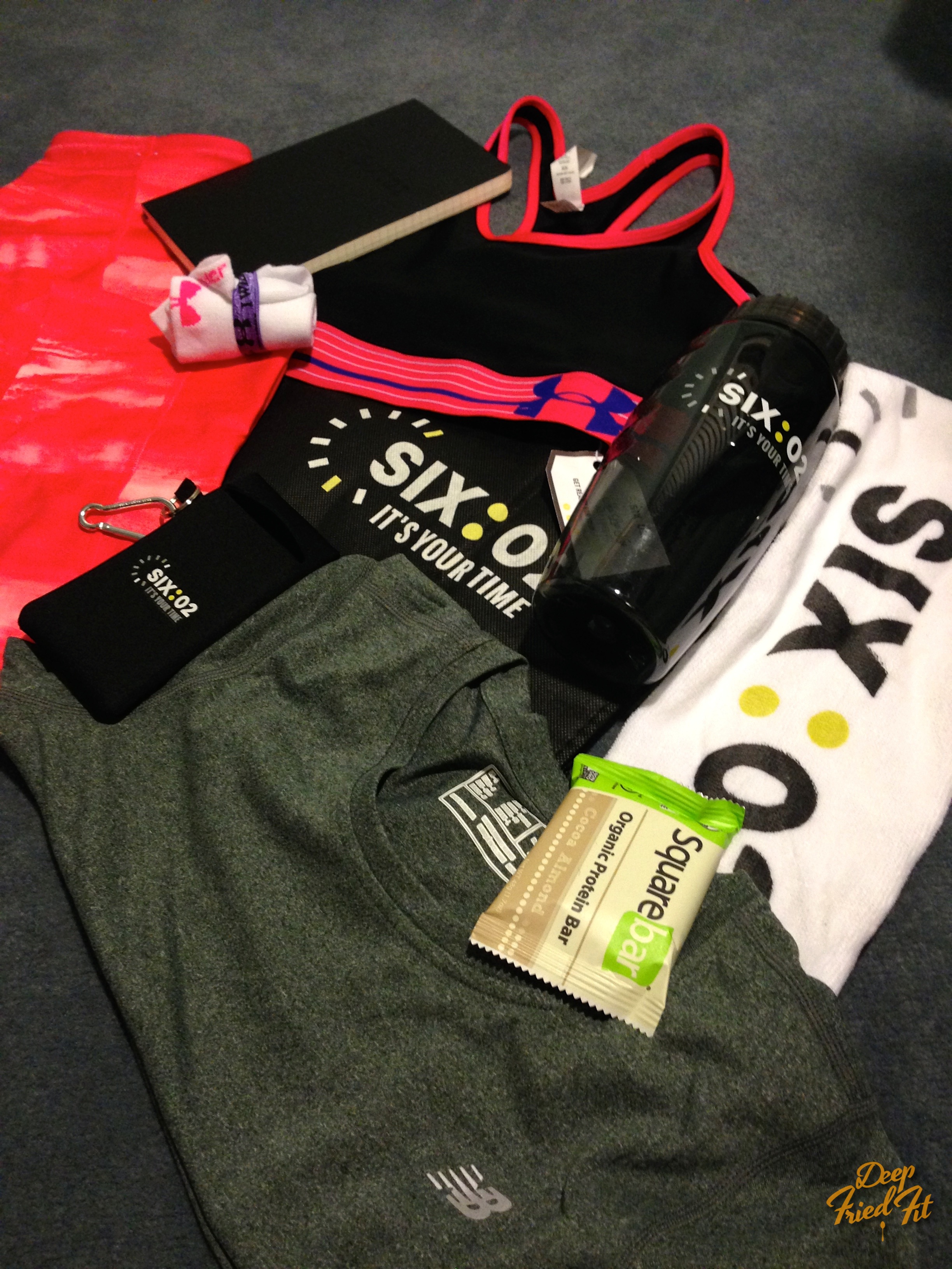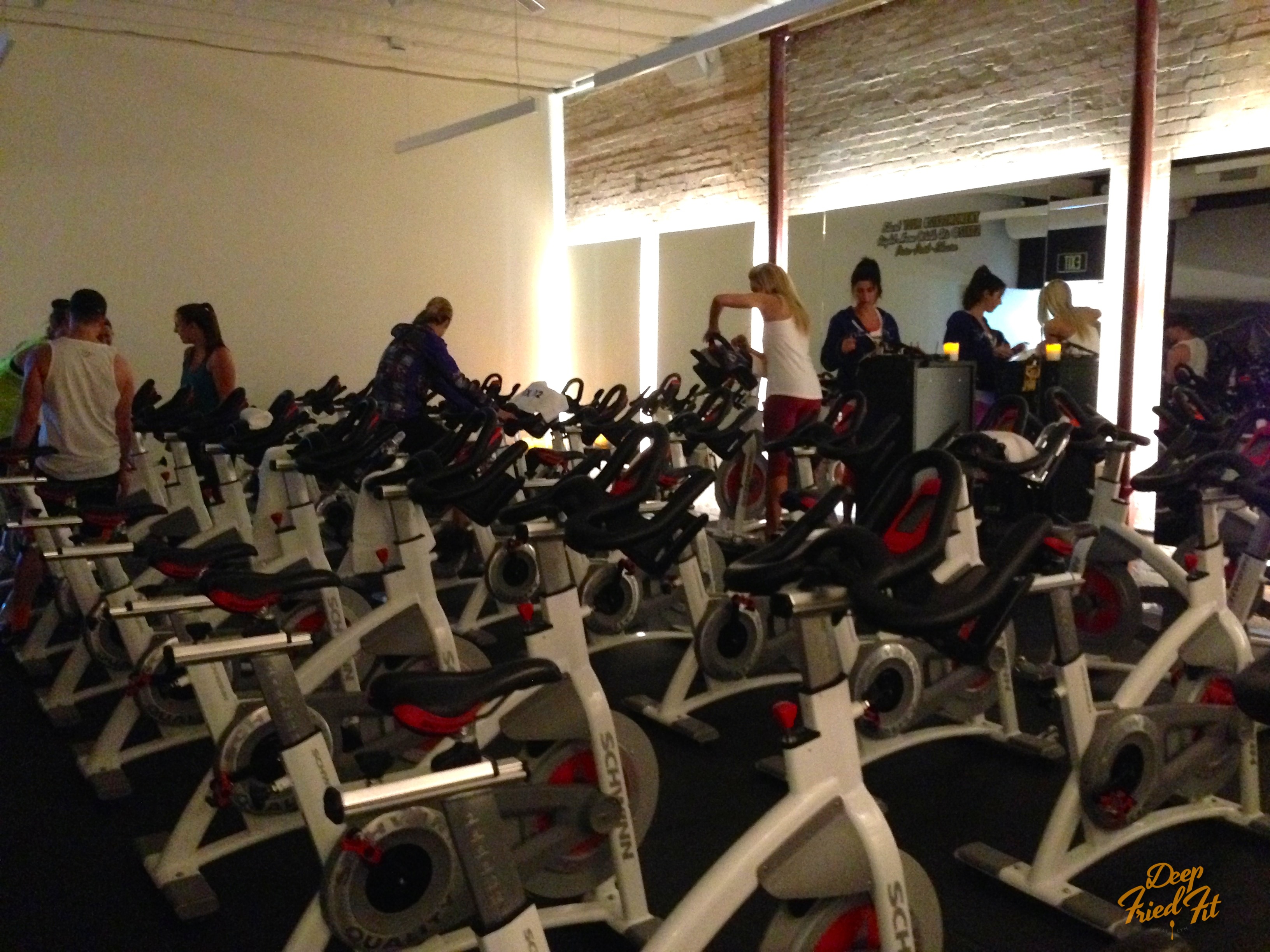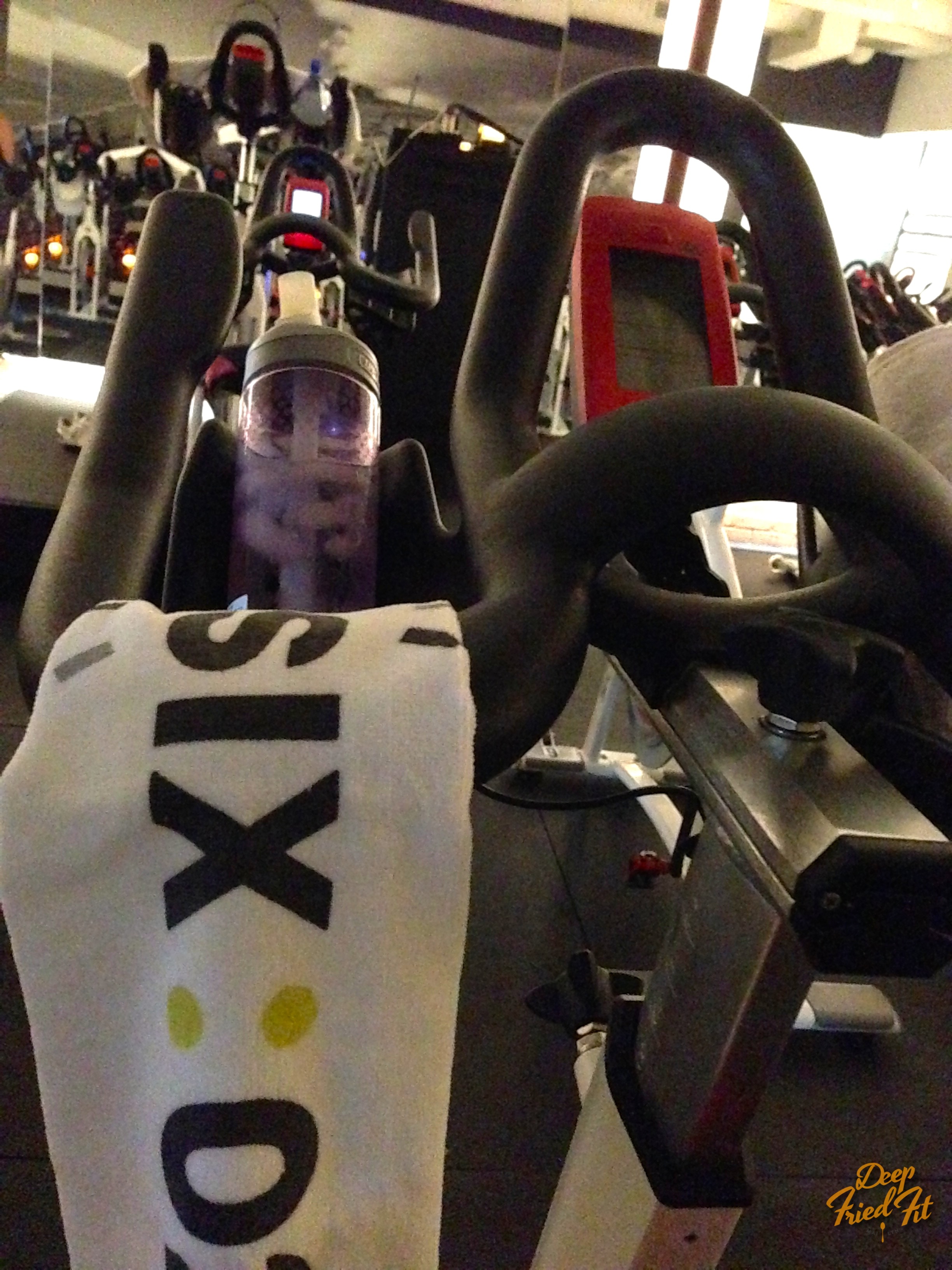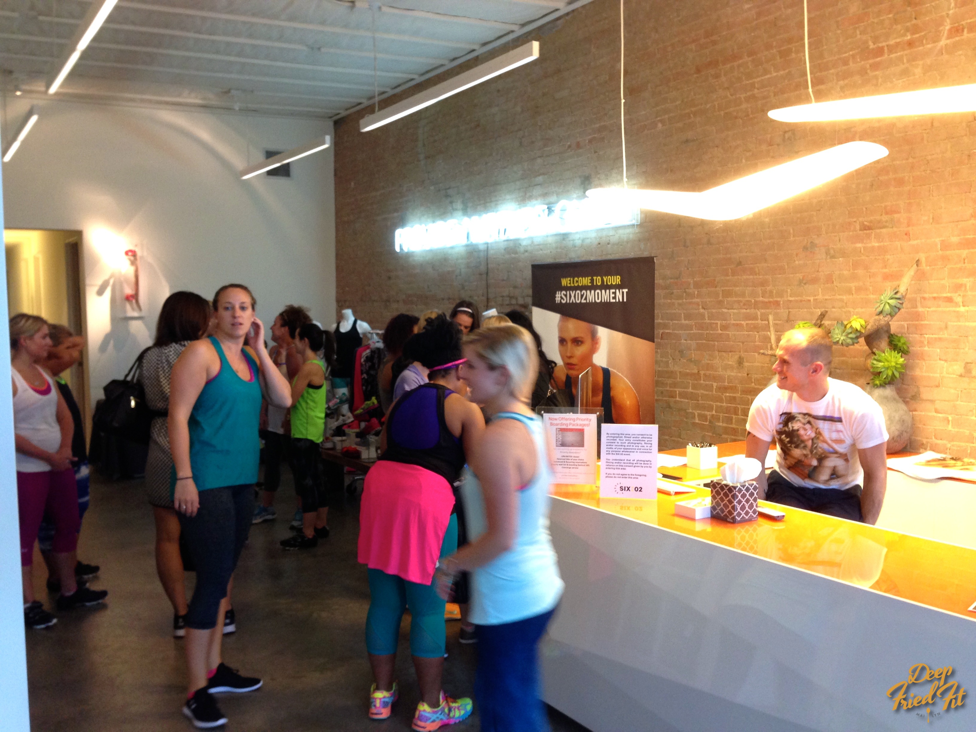 Even more awesome was being greeted with swag bags that outfitted me for the cycling class I was terrified of. I was treated to these awesome UnderArmour orange leggings, a black and pink sports bra and a New Balance grey shirt along with other goodies. The orange and grey perfectly matched with Deep Fried Fit’s colors! Whether they did this on purpose or not, I loved it.