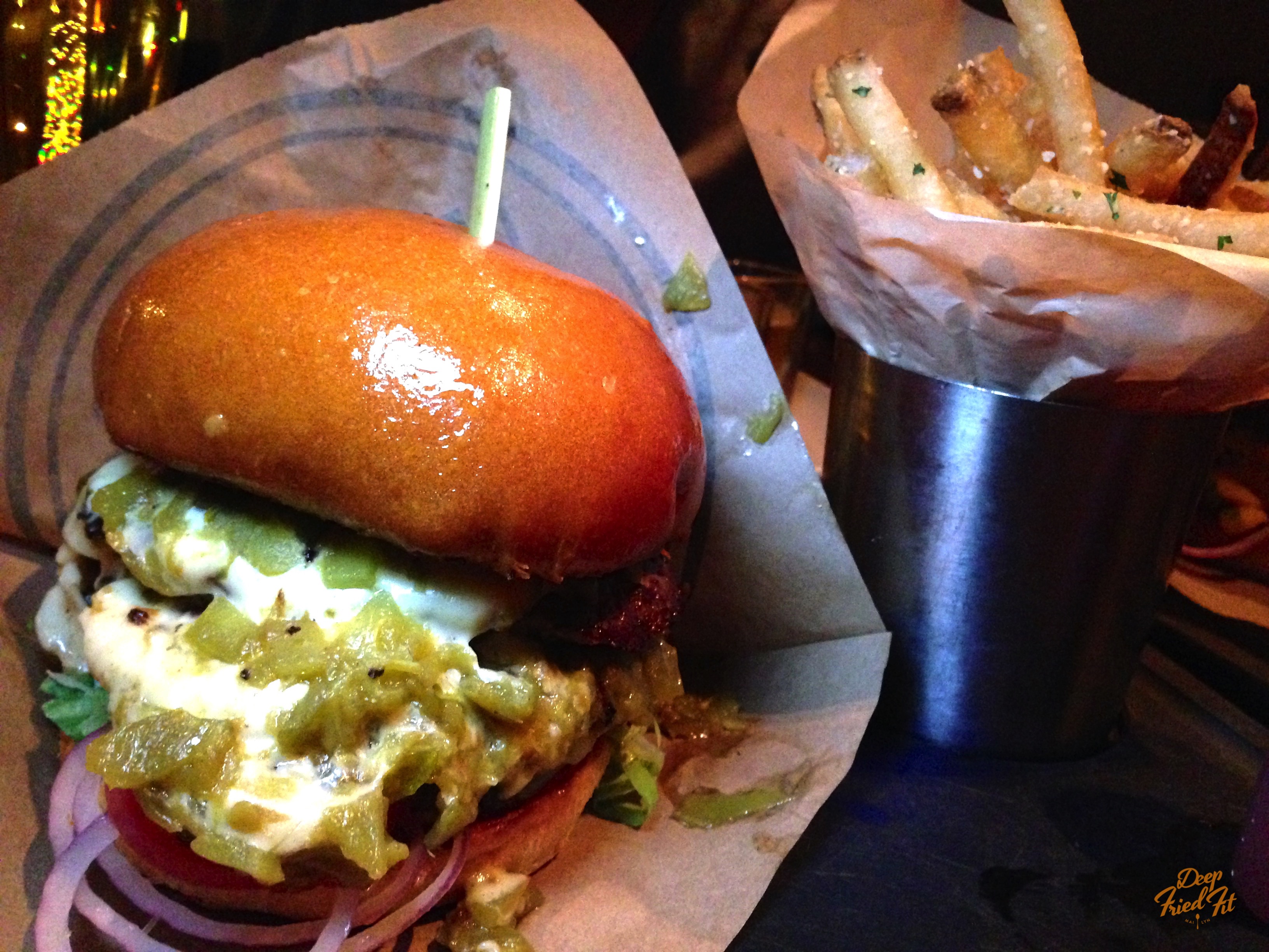 The Green Chili Cheeseburger is a standard cheese burger made with jalapeños and hatch chiles. This messy burger was huge. The heat is very subtle, almost non-existent. I’m not a fan of sweat-inducing, mouth burning spiciness, so I didn’t have a problem with it. If you’re looking for a kick you won’t get that. I have mixed-feelings about this burger. The flavor is good, but I felt it was a little overwhelmed with the green chili sauce.