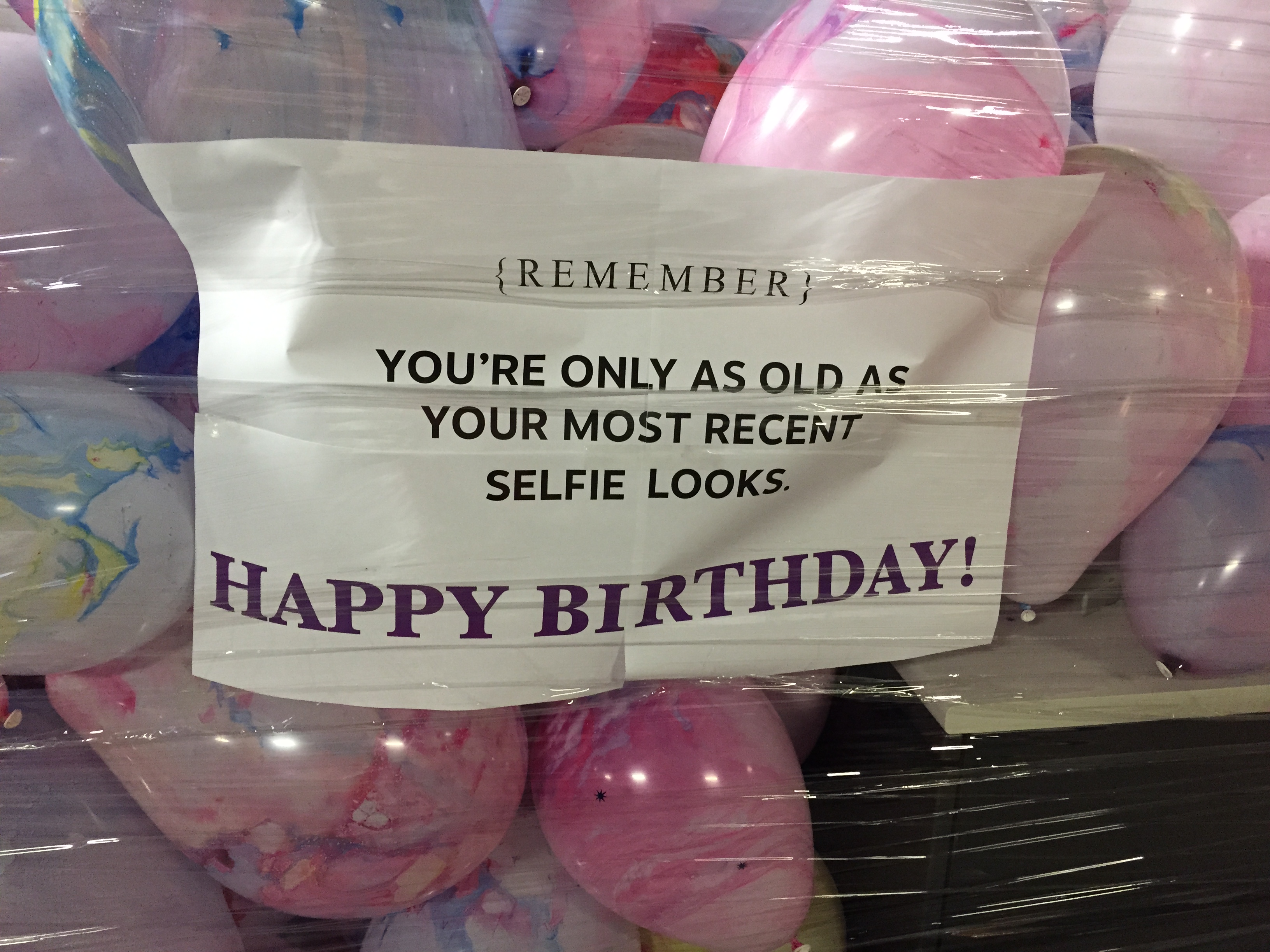 I was just floored. I couldn’t believe my friends at work stayed late to blow up a million balloons, fill up my cube, set confetti booby traps and wrapped it into a perfect present. For kicks, they filmed me running it just to see what would happen. I’ll forever be a .gif now. Watch it here.