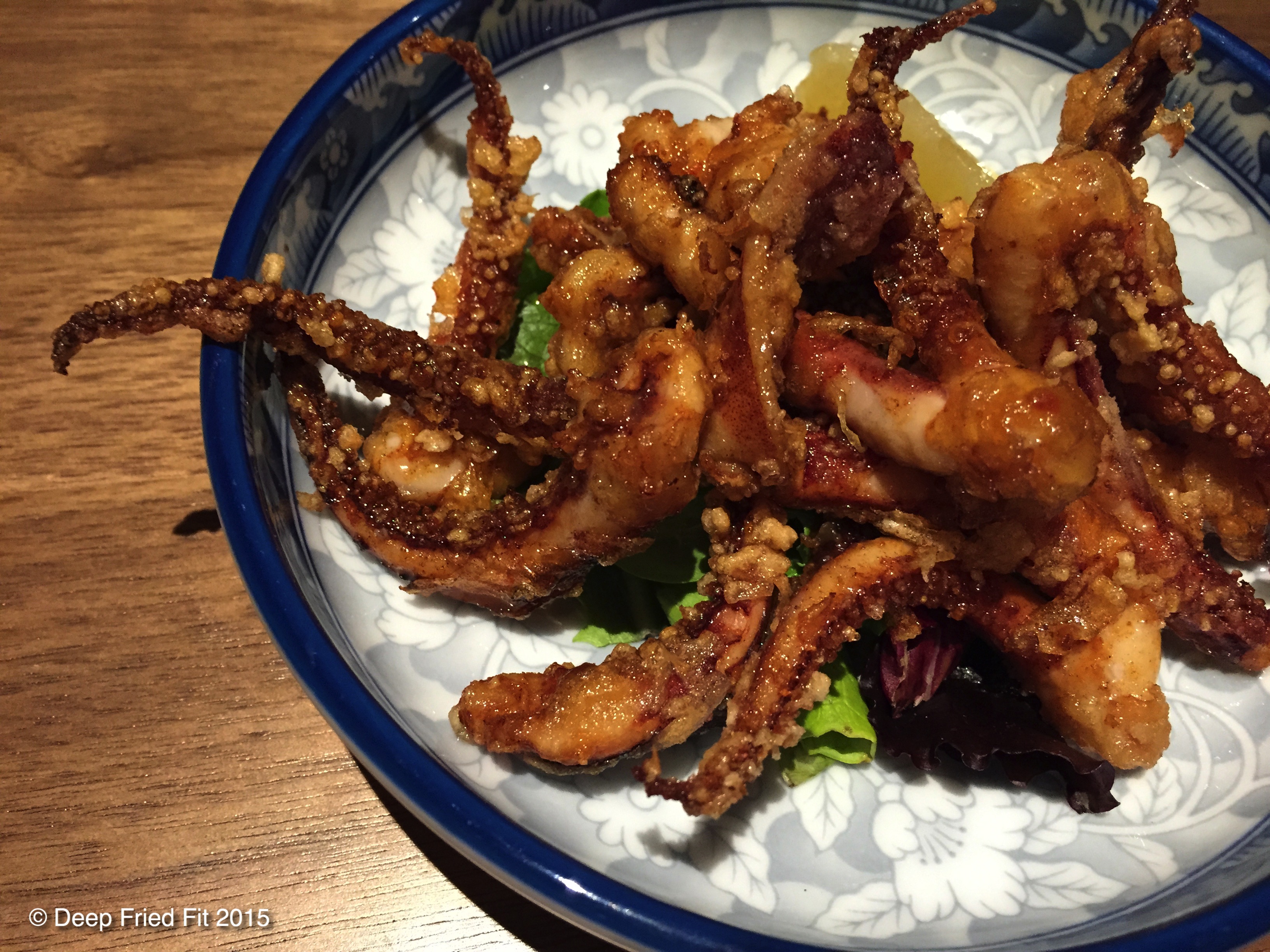 The menus were in English fortunately. Here’s what we ordered! For starters, we had the chicken karage and the fried squid legs. The chicken karage was tasty and crispy. It’s usually dubbed “fried chicken.”