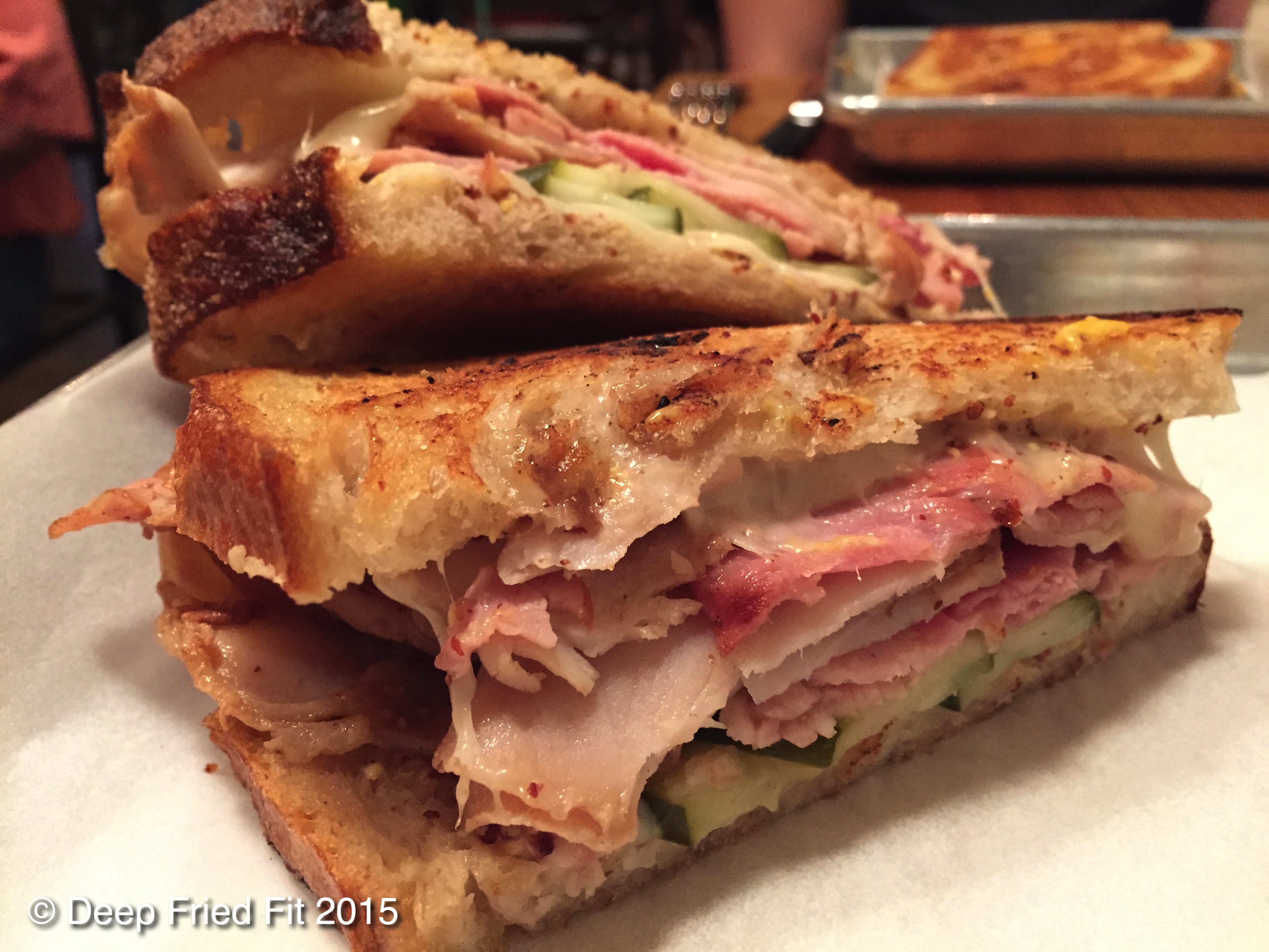Next up, the Cuban. I didn’t come all the way here (oh you know, like it’s so far) for a basic grilled cheese sandwich. Nope nope. I splurged and got the Cuban, which has roasted pork, ham, swiss cheese, pickles, and spicy mayo on grilled sourdough. It was damn delicious.