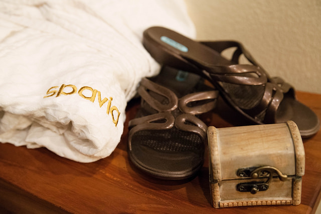 Once I was checked in, I was lead toward the women’s bathroom where I would slip into a bathrobe for my massage. Each locker comes with a bathrobe, slippers, and a cute little treasure chest to stow away jewelry. Loved that little touch.