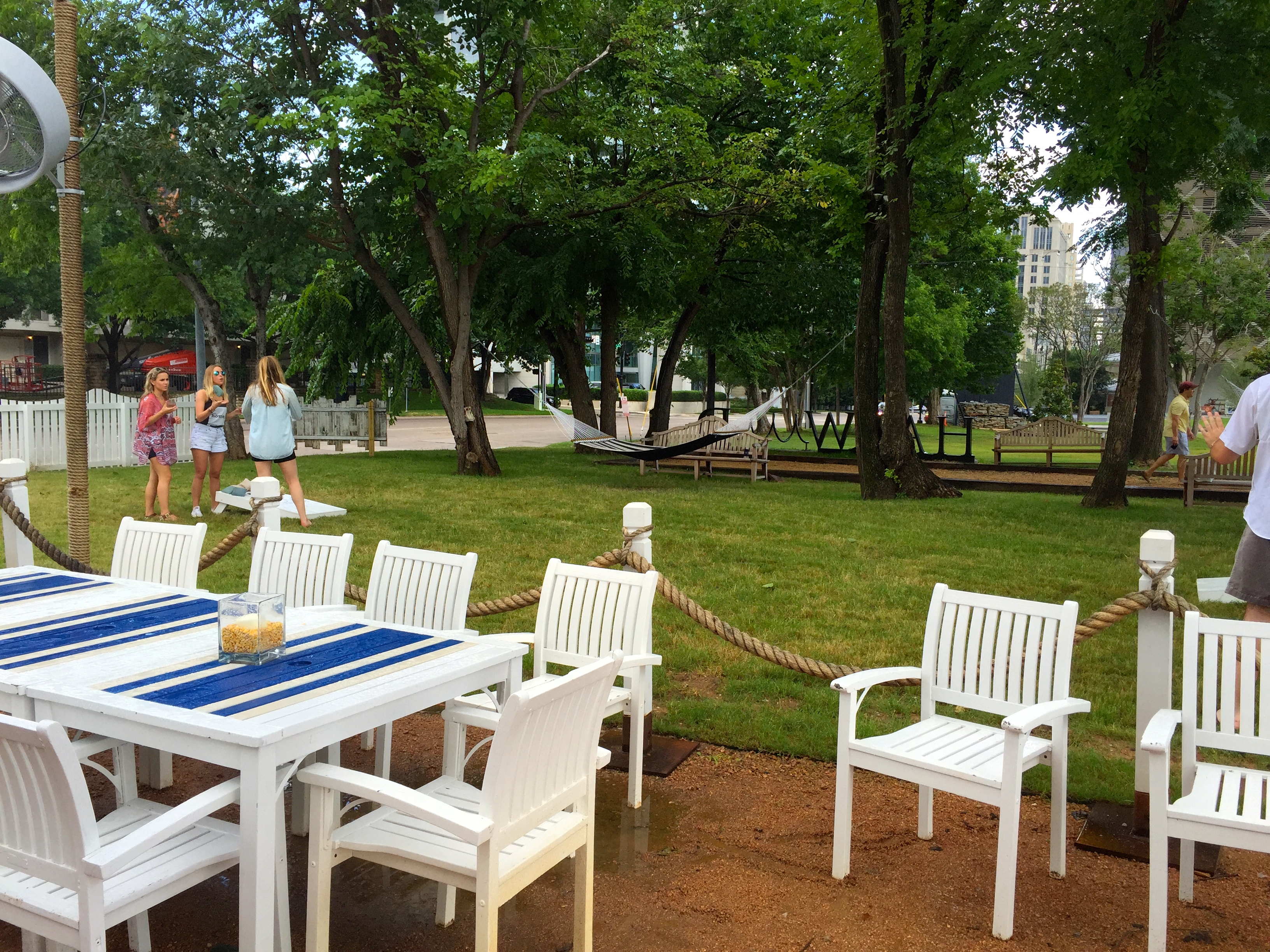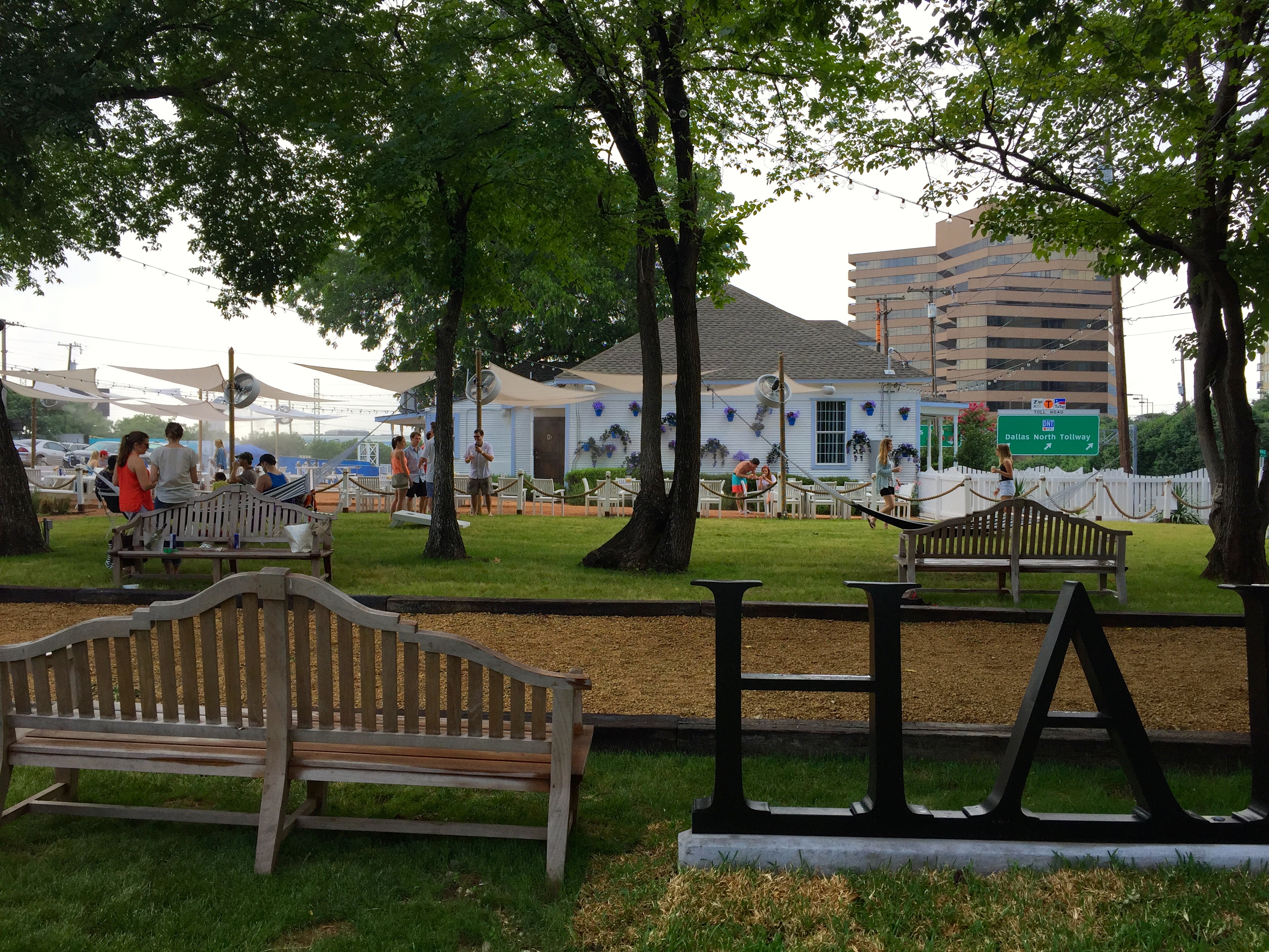 I have to tell you about the little slice of beachy paradise that my friend Amanda of Glitter and Spice visited in our urban jungle also known as Uptown. The Grove at Harwood off McKinnon Ave is such an adorable spot for drinks and outside fun that I had to share it.