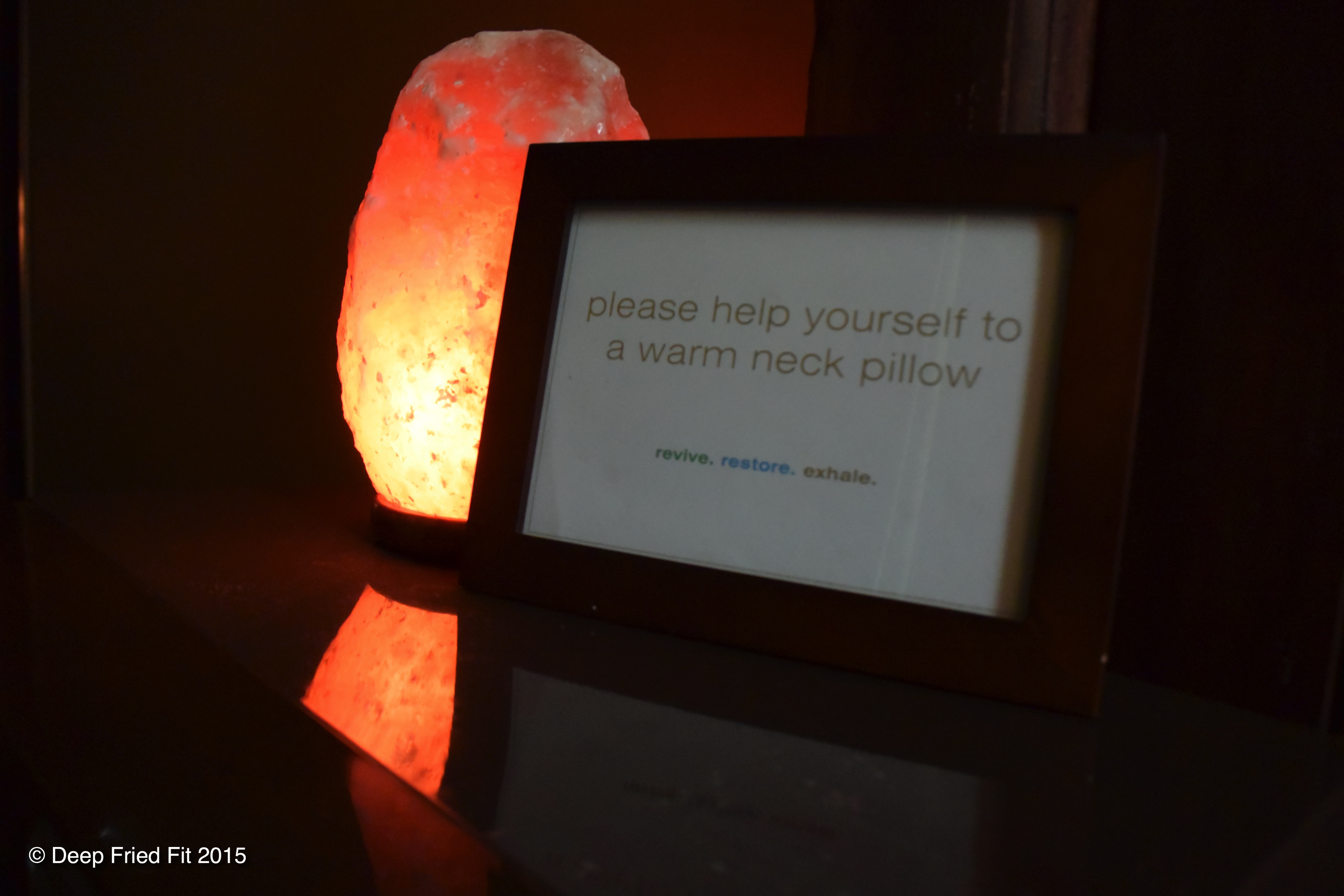 The Quiet Room leads you into a narrow hallway of doors where all the zen and bliss would take place. There’s a small lounge area to relax while you wait for your therapist. I poured myself some water and grabbed a scented neck wrap and took a few moments of quiet for myself. I can’t say it was that quiet as I could still hear all the bustle from a yoga class that just let out from downstairs.