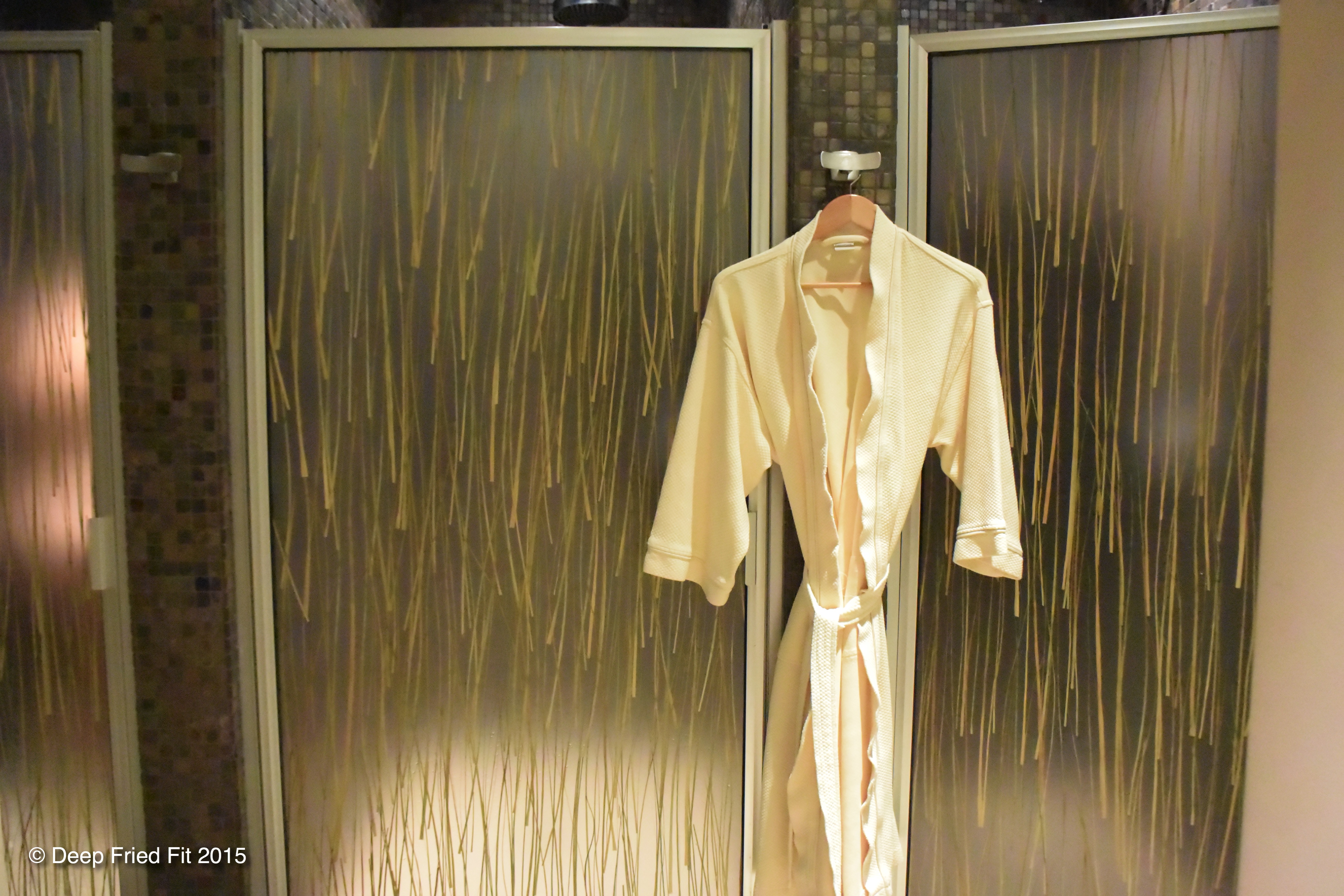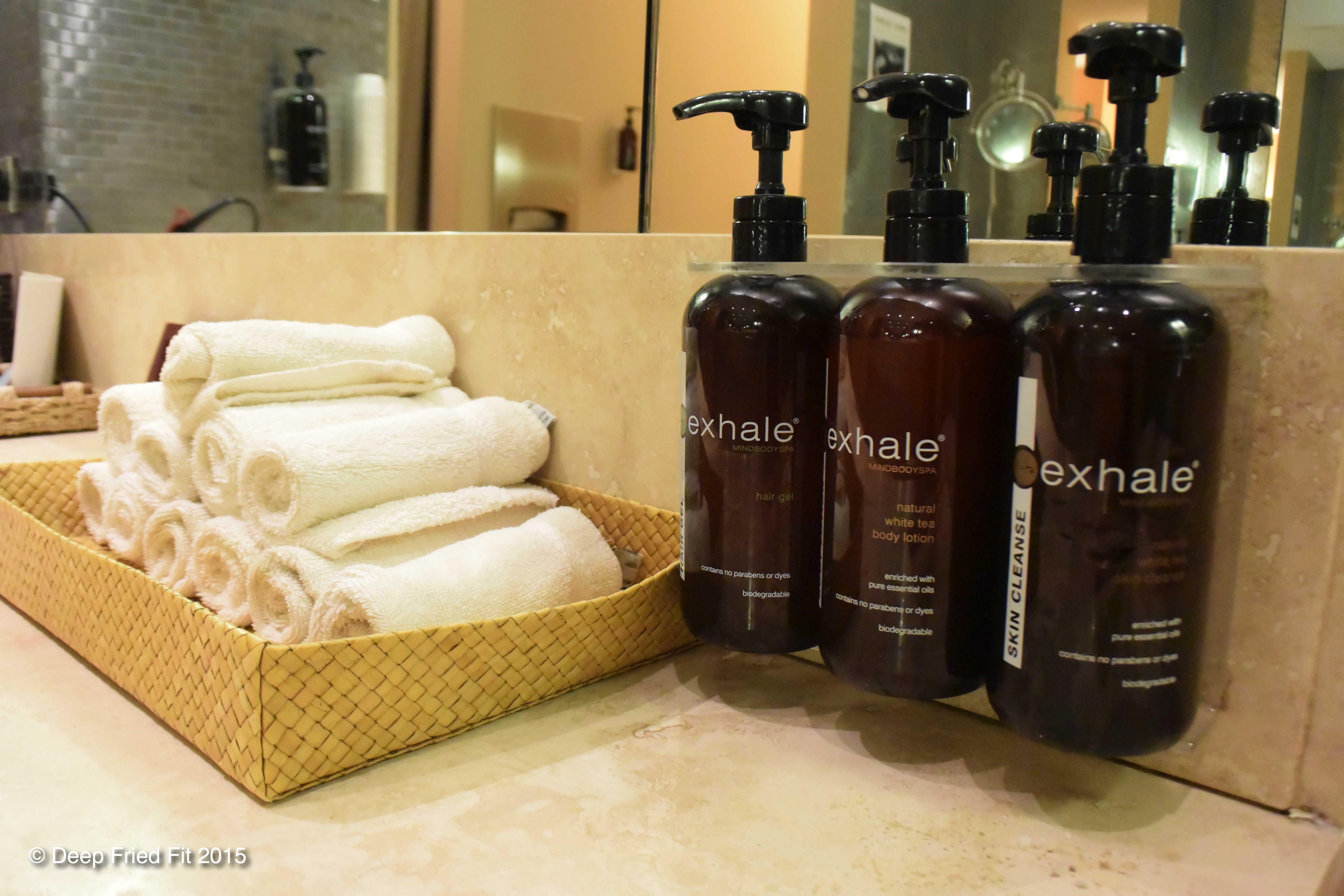 The Spa: Exhale is a beautiful spa. The lobby area acts both as a waiting area and a retail store. You’re greeted by friendly staff that’ll direct you where you’ll need to go. After a great workout class, I headed to the ladies locker room for a quick shower. I wouldn’t want my massage therapist working on a sweaty body and it’s just courteous anyway. After my shower, I put on a robe and some slippers, put my belongings away in my locker and headed to the quiet room.