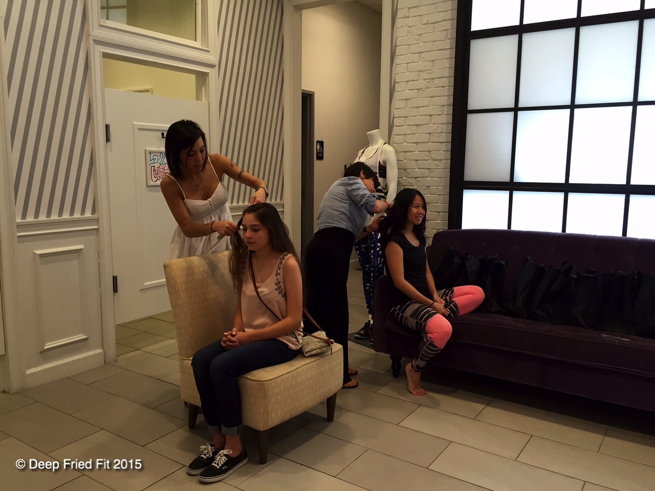The beauty braid bar was definitely a huge hit. It was an early Saturday morning and who doesn’t want to leave looking super cute after a class, amiright? The Pouf team did an amazing job. I was so in love with my french braid mohawk. I can’t braid to save my life so I wore it all day long. It was so fun.