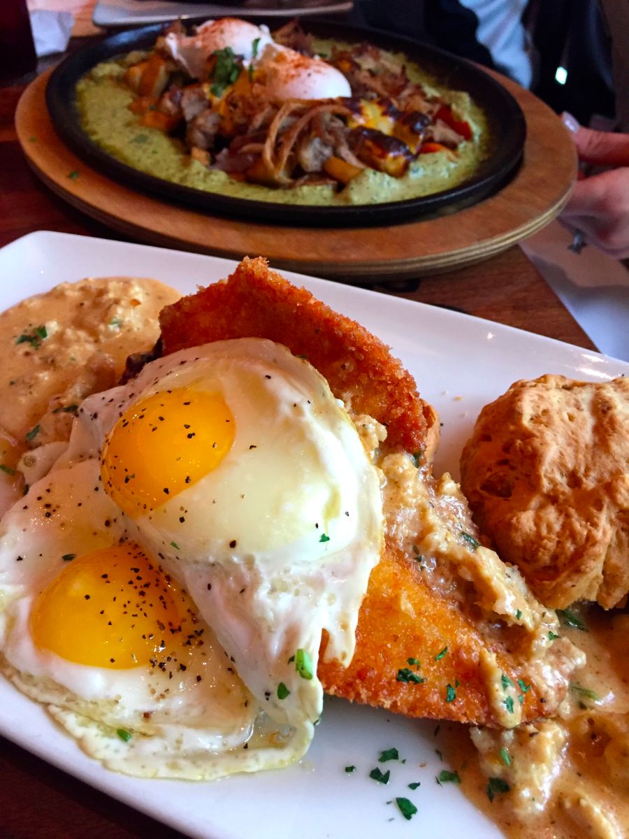 My favorite would be the Chicken and Biscuit. It’s a crispy fried chicken breast with chicken sausage made in house, sunny side up eggs, a house-made buttermilk biscuit, all topped with cajun gravy maple syrup. I was really surprised and thought this was so tasty. The chicken breast was thin sliced and surprisingly wasn’t dry. I loved the eggs on top and that gravy was everything.