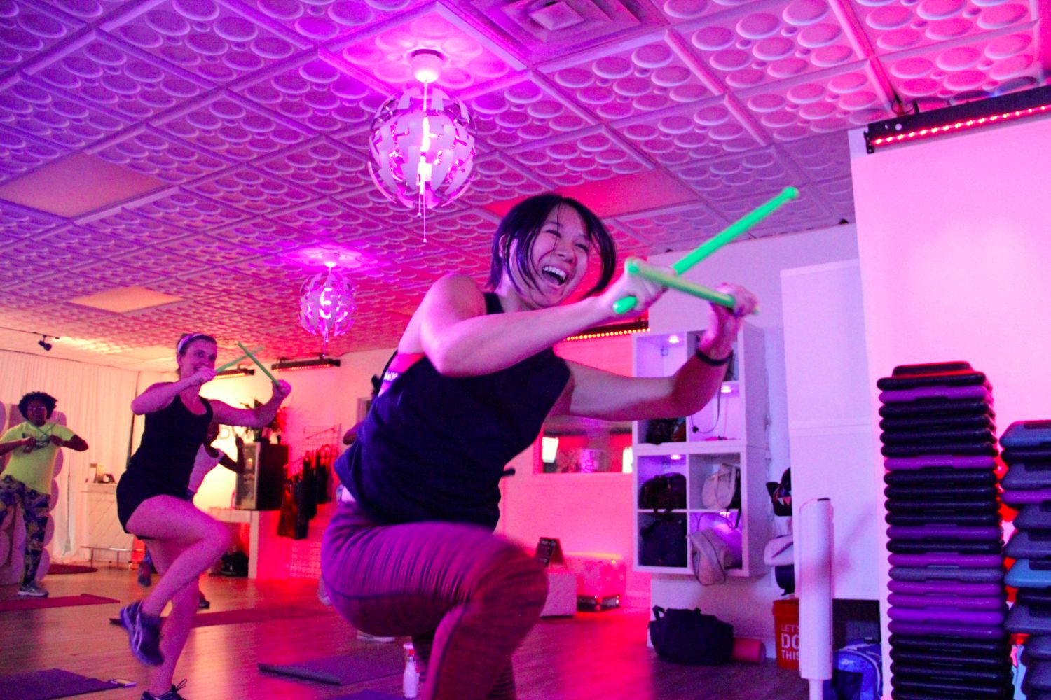 Once we all said our hellos, pounded a few drinks, and decompressed, we were all finally ready to get into the groove and headed toward the dance floor. Studio owner Dominque LaShae is an incredible instructor and she would be teaching a mash up of Pound and her signature Funk the Fit.