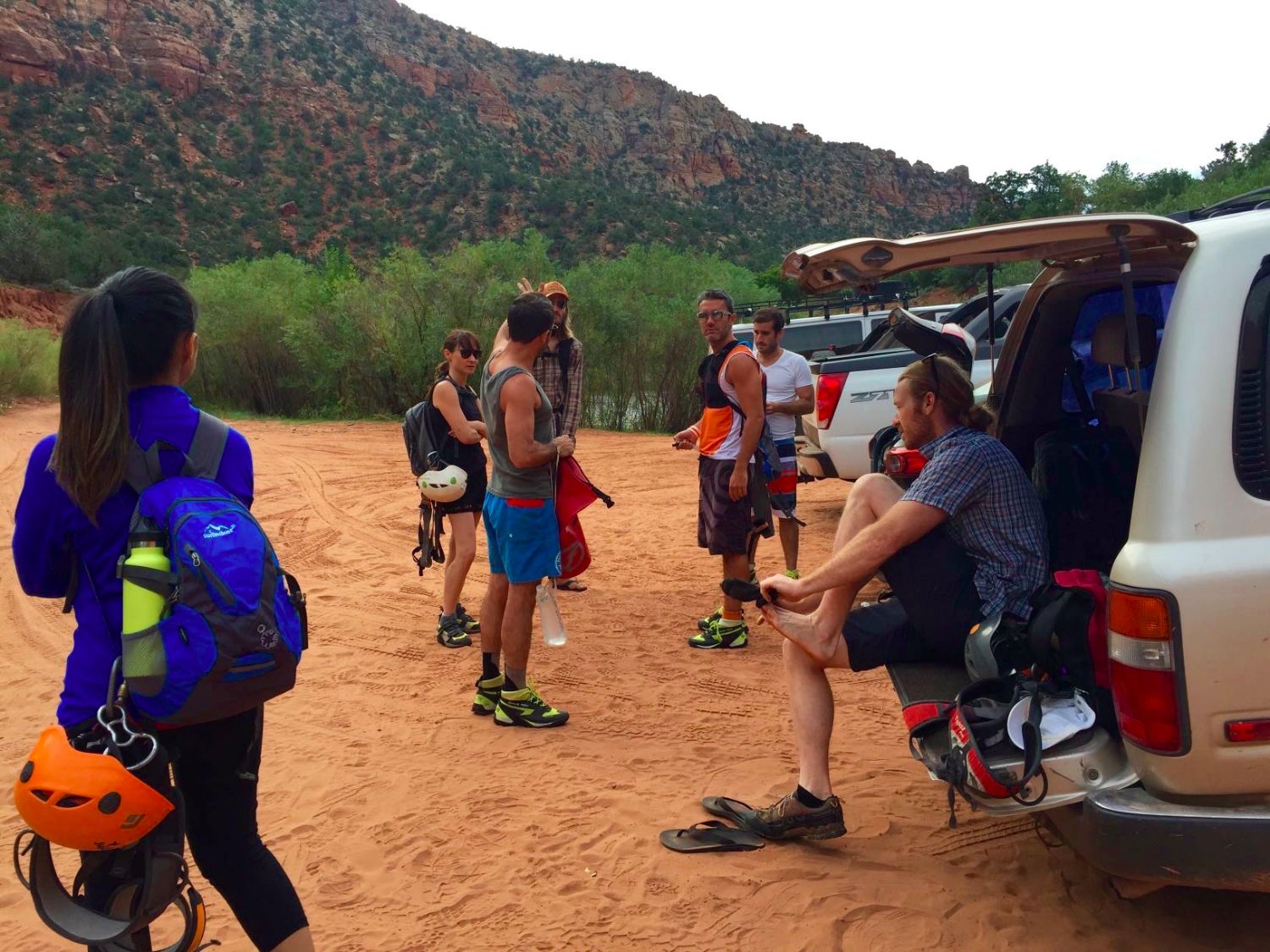 The morning was absolutely beautiful. We caught the sunrise on the canyon walls, sipped on coffee, and met with our guide. His name was Al and he was super cool. For our trip, he decided to take us to Waters Canyon. It’s known for its beautiful narrow passages, waterfalls, and cool springs. We took a 30 minute drive out to the middle of no where and began our ascent.