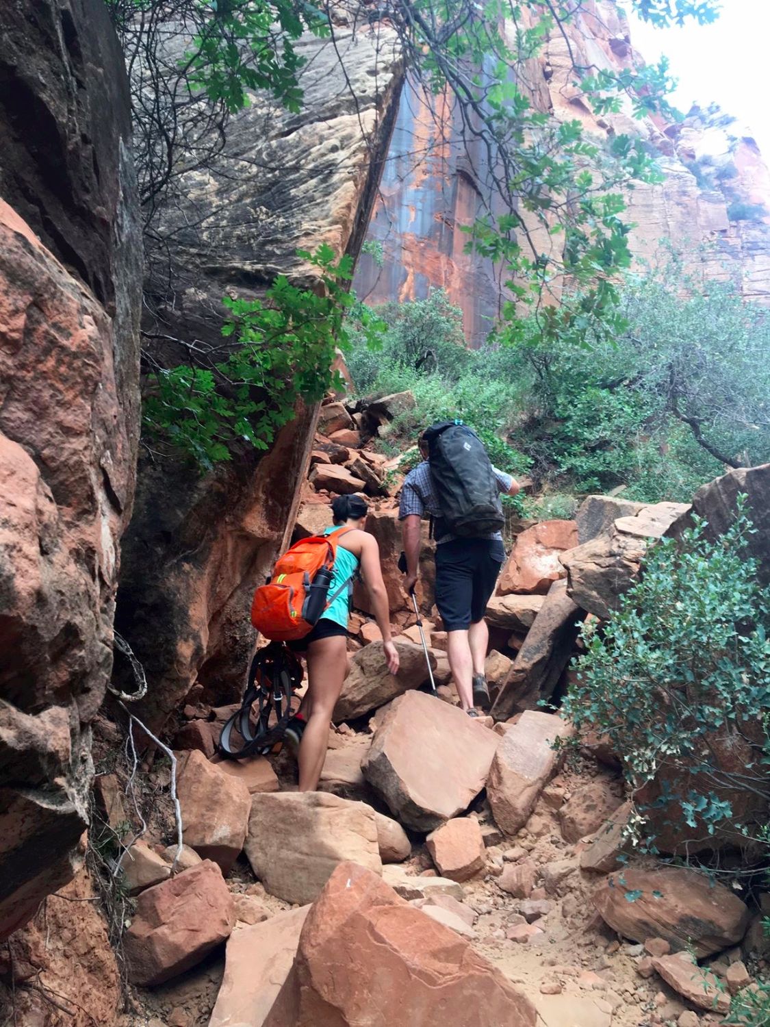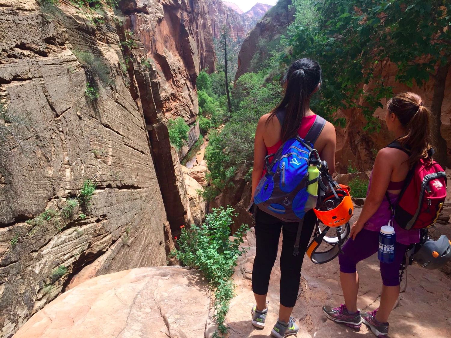 In addition to our backpacks, we carried our own harnesses and helmets. We began the 2 mile hike into the canyon. It was pretty much all uphill, so I’m sure our butts looked freaking amazing after! I would say this was the hardest part of the canyoning trip and it wasn’t bad at all.