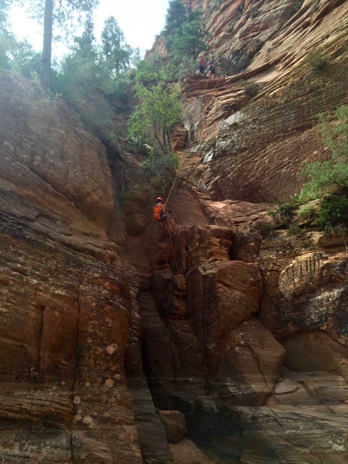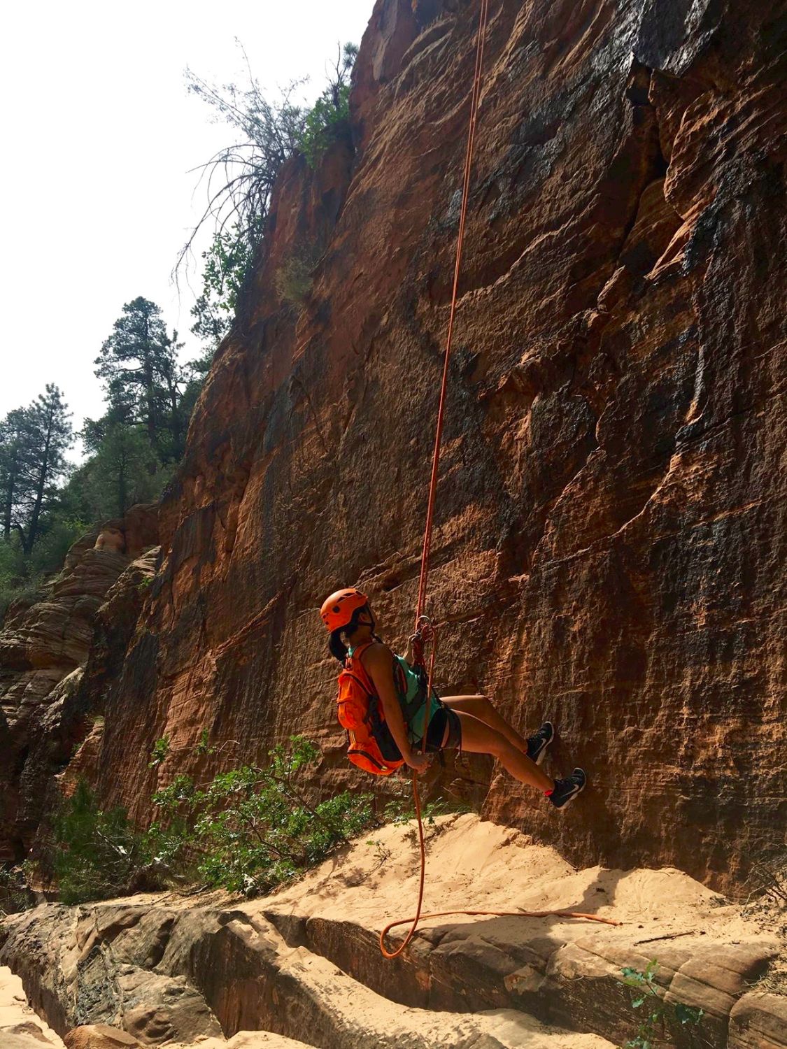 Our rappels would be broken up into 6 or 7 trips ranging between 40-100 ft. The first one was 100 ft and the most nerve-wrecking. It was hard simply because we were getting used to the feel of the ropes, but eventually it was a breeze. With that said, don’t get nervous. The ropes and harness support a ton of weight so there’s no way it can just snap. It can support a weight of 5000 lbs or something ridiculous. Our guide Al could rappel us all the way down if he needed to and had a second rope that he controlled. It was easy to learn and pretty basic. The hardest part was simply taking the first step off the edge.