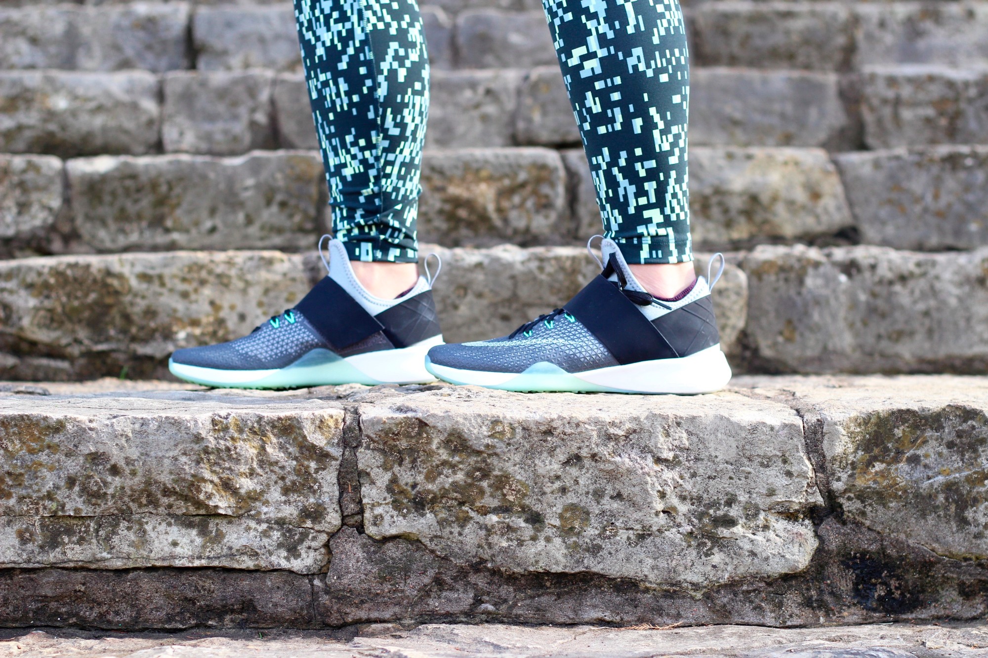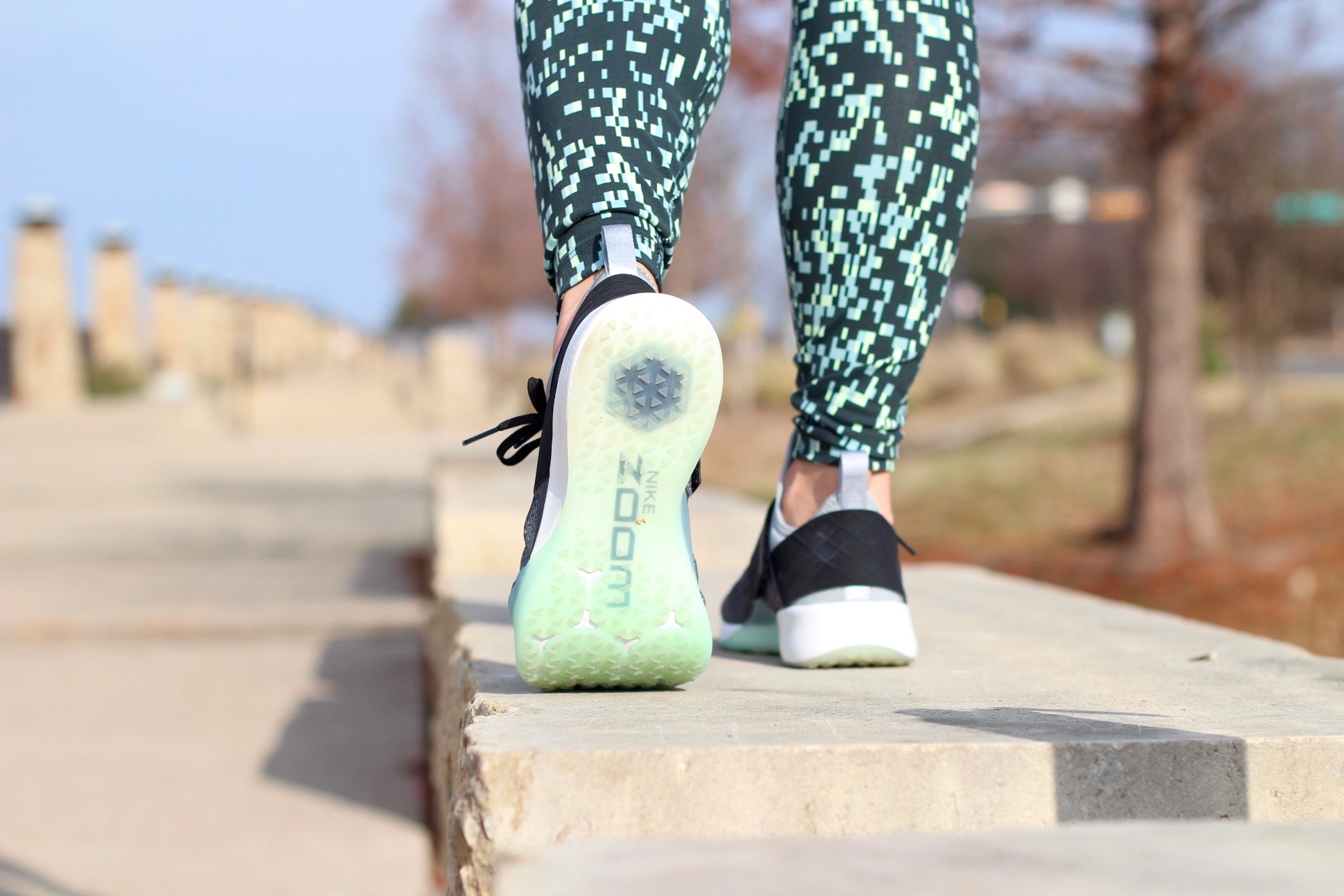 I’m decked out in Nike today. This is part of their winter collection, but since Dallas is Dallas, it was warm enough for me to take it outside without a jacket. Ha! I love loose training tanks like this one, especially for running and in the gym. I actually have a few just like this in different colors and perfect for short runs. Not a fan of tight tops that hug in the wrong places. I think my signature look always includes fun colored tights. I’m all about flashy pops of color. And these shoes! The Zoom Strongs were inspired by Dallas Wings basketball player Skylar Diggins. These are meant more for gym action with the grippy bottoms and over-the-foot strap that’s supposed to help keep your feet in place. Had a few goes at the gym in these and I love them. Super comfy.