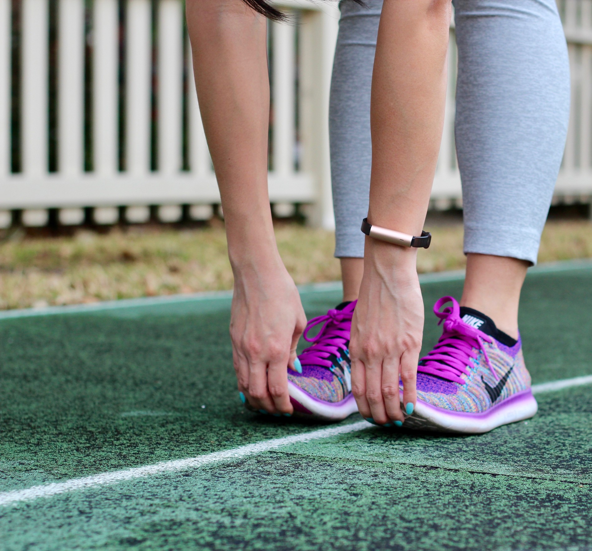 Activewear Details: Top & Bottoms – Outdoor Voices | Shoes | Fitness Tracker | Water Bottle (similar)
