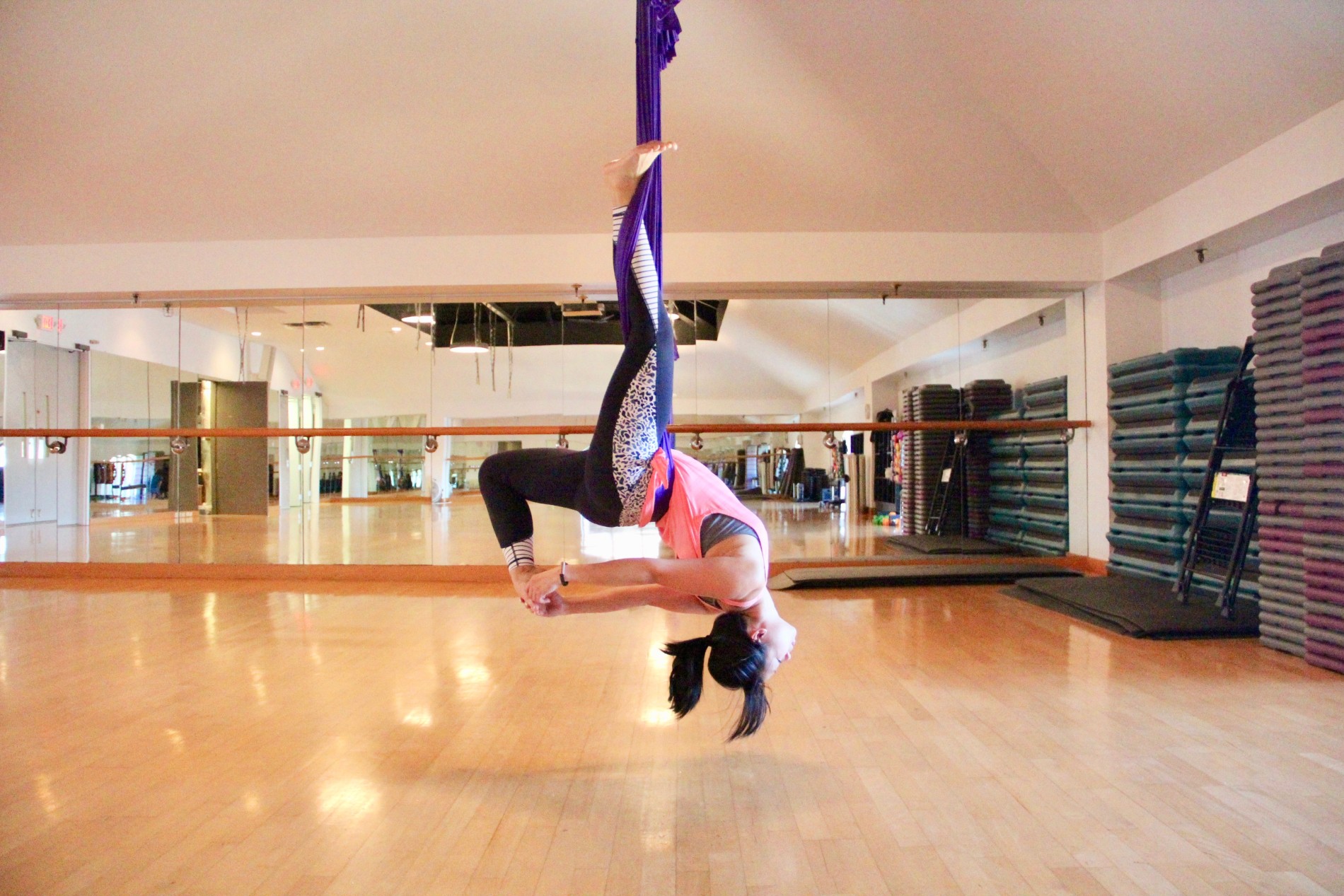 Next, I also had the chance to check out their anti-gravity yoga class with Meg. I’ve taken anti-gravity or aerial yoga classes before, so I was definitely excited to get back in those silk hammocks.