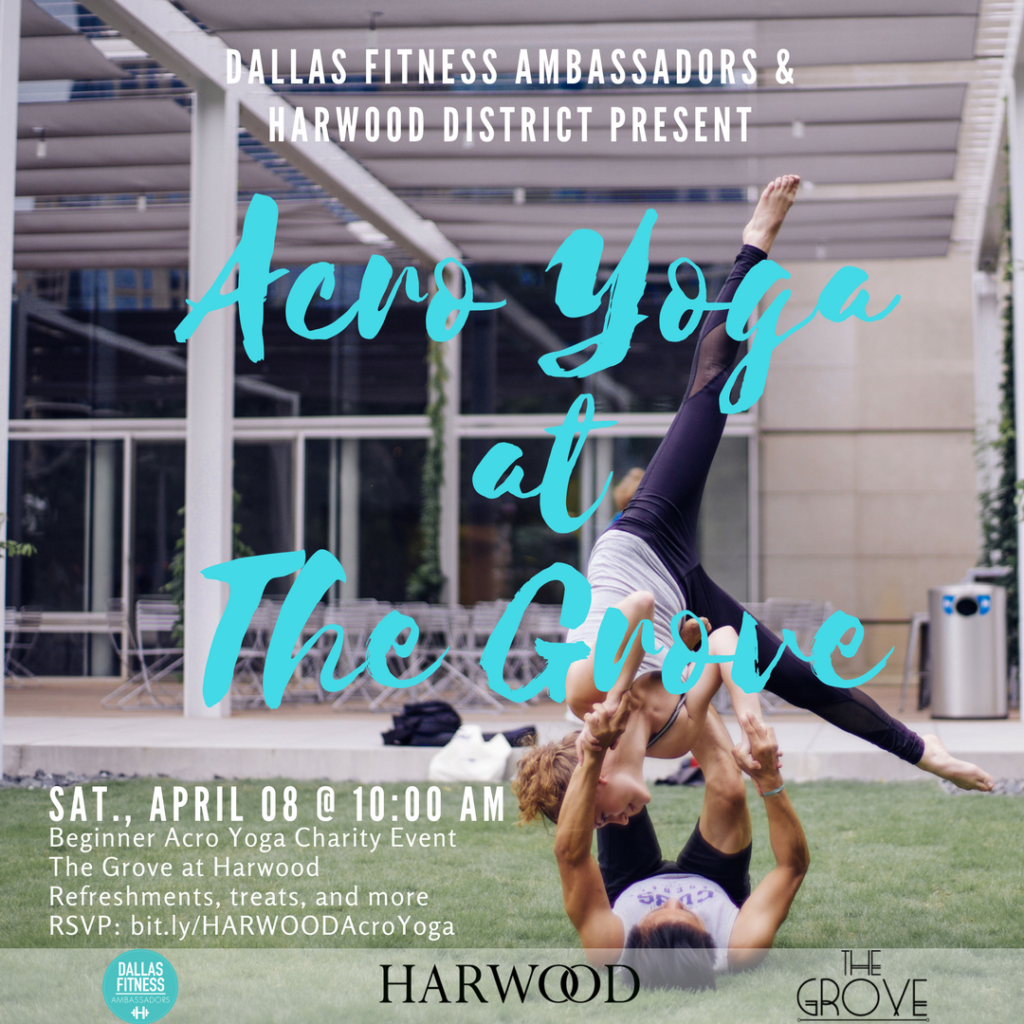 On April 8th, join DFA for a beginner’s acro yoga class at The Grove in Harwood. It’s a charity event that will benefit a local animal rescue shelter. Swag bags provided by Outdoor Voices. Tickets are $10 and that also includes food and drink. And hopefully, puppies!! Guys, it’s going to be so awesome! You can sign up here.