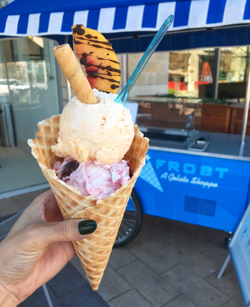 That’s right. I recommended a dessert place. I’m throwing Frost in here because if you HAVE to have dessert, their gelato has less calories than other gelato or ice cream places. Each scoop is less than 200 calories and you can check out their nutritional info here. I had a hard time believing it myself. Don’t quote me on this, but I don’t think they use eggs or milk in their product which lessens the calories. I love their peach sorbet and the marble black cherry the best. Obvi, you can sample them all. Why not.