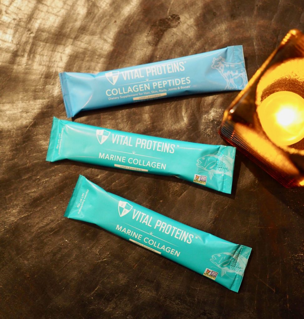 Definitely loved their single serves and I use their Collagen Peptides and the Marine Collagen. Super easy and convenient to carry with me anywhere. Vital Proteins sources the Collagen Peptides from beef, the Marine one from fish. They now offer a Veggie Blend version which incorporates more fruits and veggies in addition to beef collagen peptides.