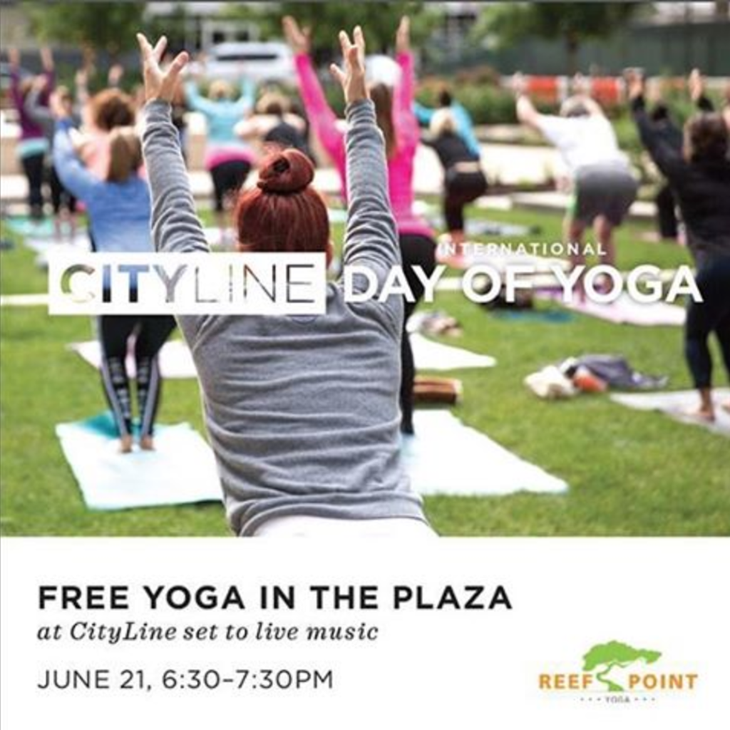 Celebrate International Yoga Day with @CityLineDFW and @reefpointyoga with free yoga in the plaza on June 21st at 630p. @Yogawithdeandre will lead an all-level flow. Dallas Fitness Ambassadors is co-hosting the event! Bring your mat and water bottle. #CityLineStrong
