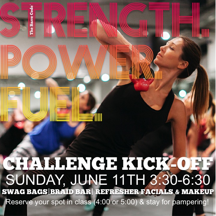 Join Barre Code Plano on Sunday, June 11th for a challenge kick-off event. Come for class (Barre Code at 4:00PM or Brawl at 5:00PM) and stay to get pampered with a braid bar, refresher facial and makeup applications (Beauty treatments provided by Makeup Theory DFW and The Skin Space). Everyone who signs up for the challenge will receive a swag bag provided by Whole Foods Plano and Sunnies from The Barre Code Plano.