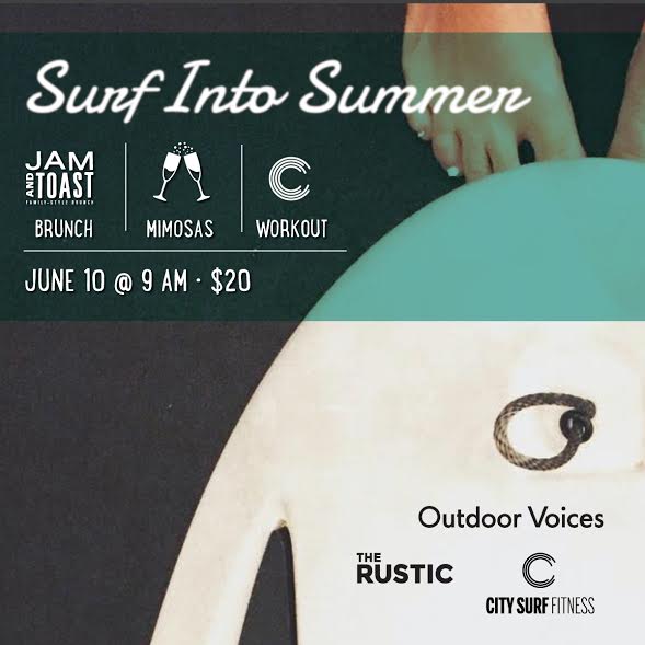 Tickets are $20 and include City Surf workout, Jam & Toast Brunch, your first mimosa and a raffle ticket to win prizes from their sponsors! Limited spaces available, so act fast!