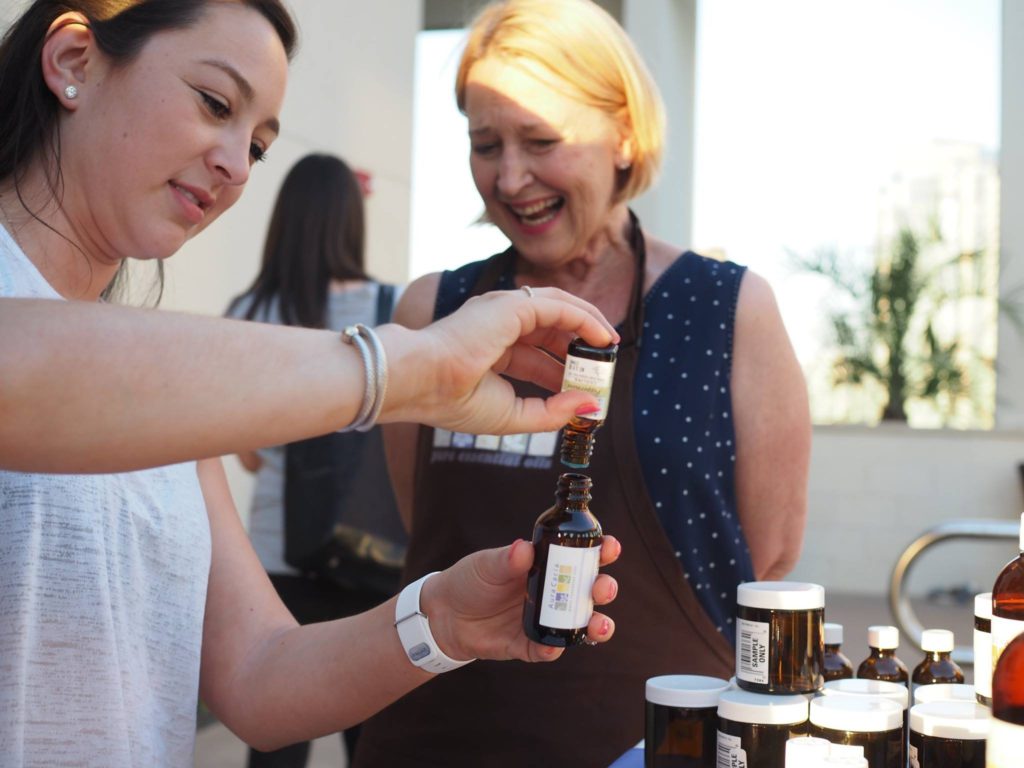 Next, to really hone in on the whole mindfulness theme we had going on, our partners for the event really created an amazing experience. Aura Cacia, an essential oils vendor for Sprouts set up an awesome DIY Essentials Table. Everyone could make their own body mist, oil, or scrub to take home!