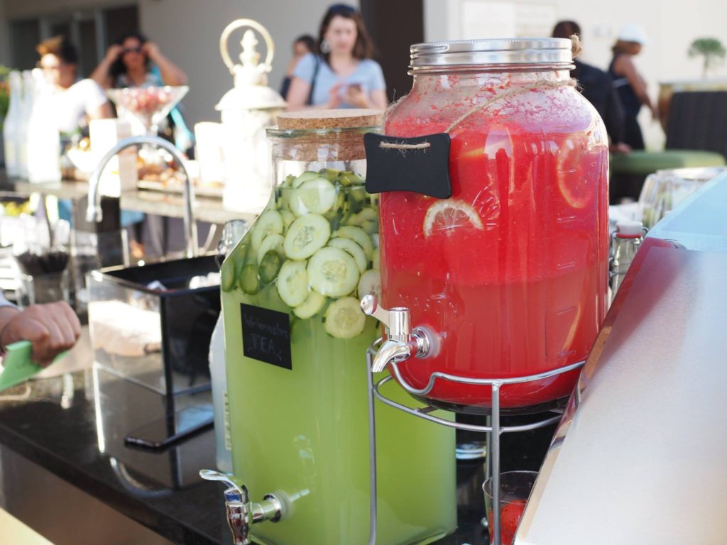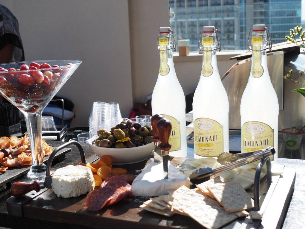 We began the evening with light summer cocktails made with fresh Sprouts produce and ingredients. Mary made this amazing jalapeno margarita and this spiked lemonade (using the Sprouts Sparkling Lemondate) with watermelon juice and scooped balls. DROOL. So refreshing and so light.