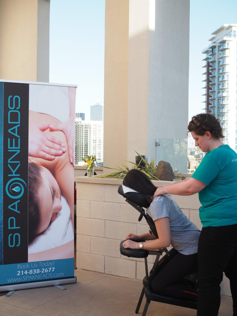 One of my favorite parts was have Spa Kneads out there rubbing out some knots with amazing chair massages. She used the lavender essential oil to make the experience even more relaxing. I LOVE back rubs and I know I have a ton of knots in my shoulders and upper back. If I could, I’d sit in that chair all day.