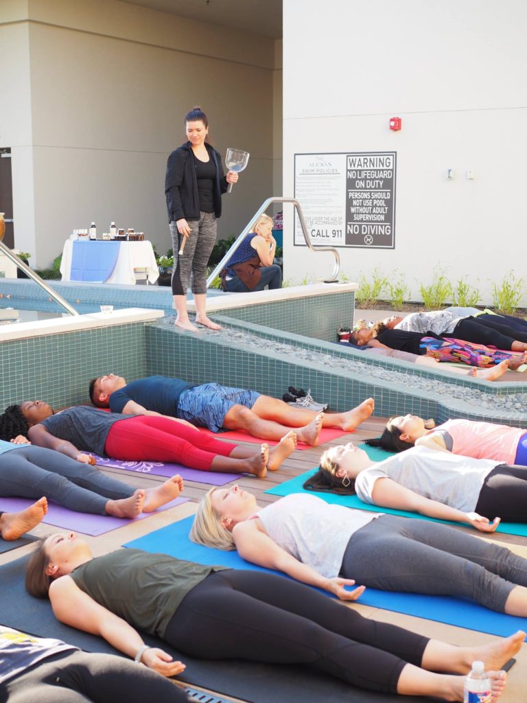 Who didn’t need a drink after a long Monday, amiright? Next we all gathered for a short 30 minuted nidra meditation class led by my friend Ana C Jones. It’s a mindful guidance that helps you release tension throughout your whole body.