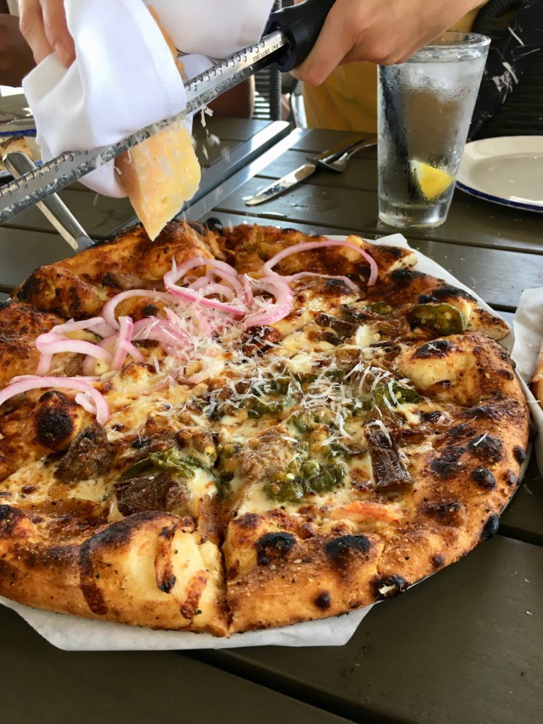 Hall’s Pizza Kitchen was originally a popular food truck that eventually was able to open it’s own brick and mortar. The restaurant itself is really cute with multiple floors. We dined on the shaded rooftop. After a long day of activities, I was excited to get some food in me. Starting with some greens! As much as I love food, I try to add in a few healthy options during my trip.