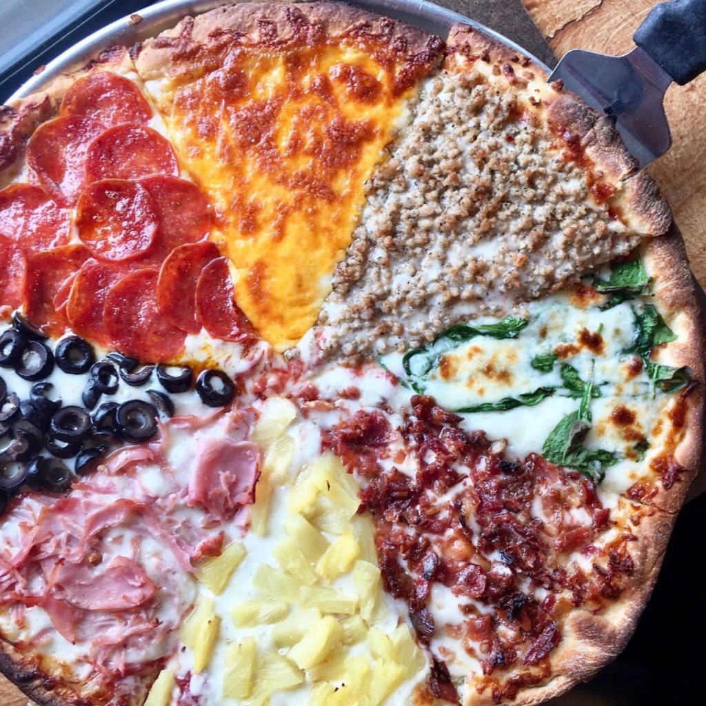 Hideaway Pizza. It’s been around for 60+ years and is a local favorite. I mean look at this pizza?!