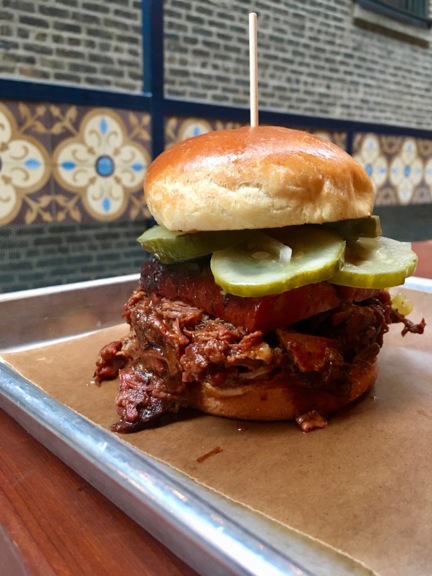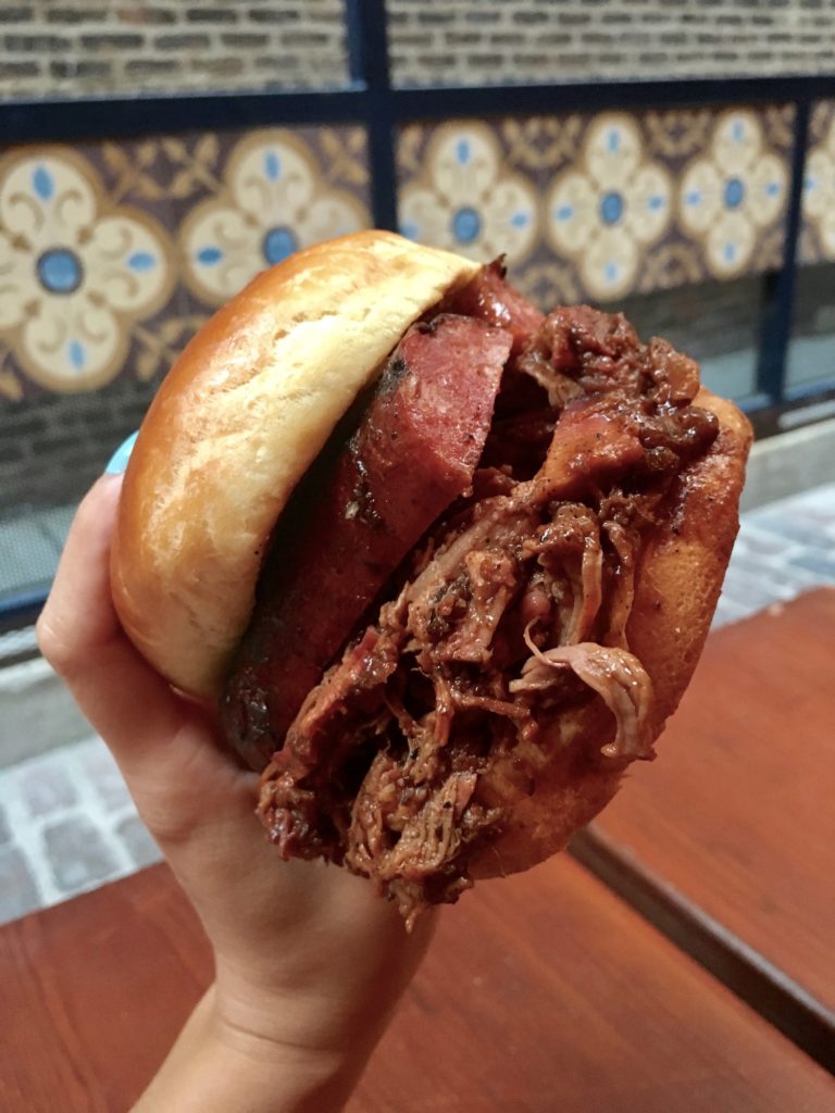 I’m not a BBQ connoisseur, but I was definitely hesitant about trying “Texas-BBQ” outside of Texas. I tried to hit the ramen spot next door, but with an hour and a half wait, I opted to check out Green Street Smoked Meats in Fulton Market/ since everyone was suggesting it. Once inside, I got the Warren Moon which is a pulled pork sandwich with a split link on top and added sweet pickles to it and I really enjoyed it. The meat was flavorful and moist. It didn’t disappoint.