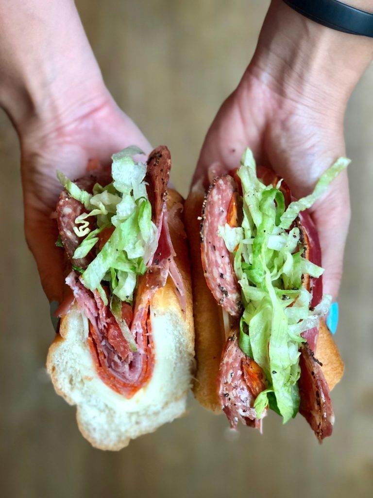I’m a firm believer that food brings people together. I love sharing delicious moments catching up with friends over a good meal. Whether it’s a watch party (because football), holiday potluck, or just cause… nothing is more heart breaking than not having enough food to feed your loved ones. So when Dietz & Watson asked me to #ChooseTheTable and create something using their amazing deli meats and artisan cheeses, I had the perfect idea! I LOVE Italian sandwiches and this is inspired by a local hidden gem, the Italian Stallion from Jimmy’s Food Store. Why not create an epic Italian hoagie recipe to share using all the best stuff? When I think about the way my friends and I like to host our parties, we always go big.