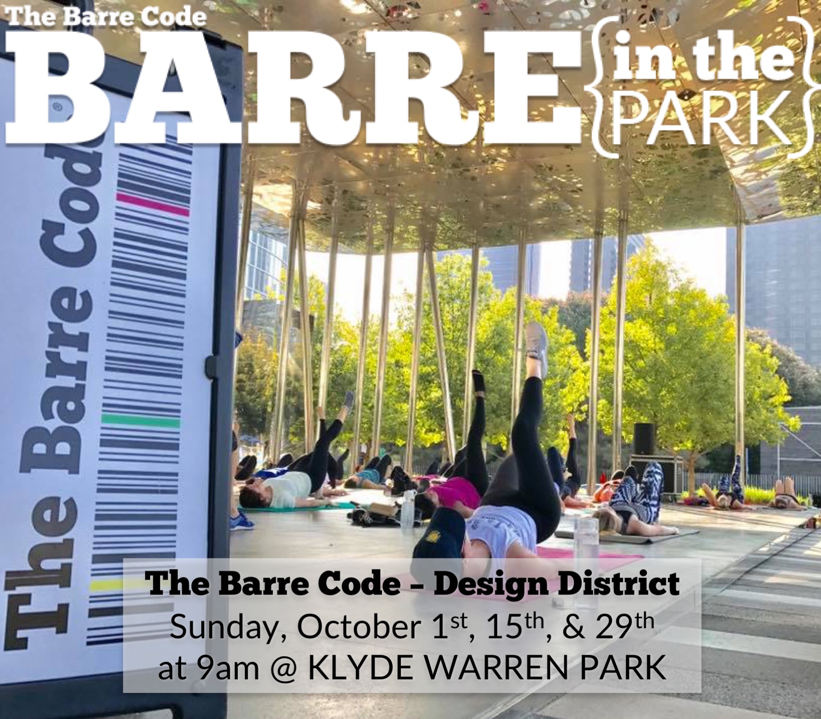 Date: Sat., Oct 14th | Time: 10am | Location: The Barre Code – Design District | Cost: Free. Email designdistrict@thebarrec