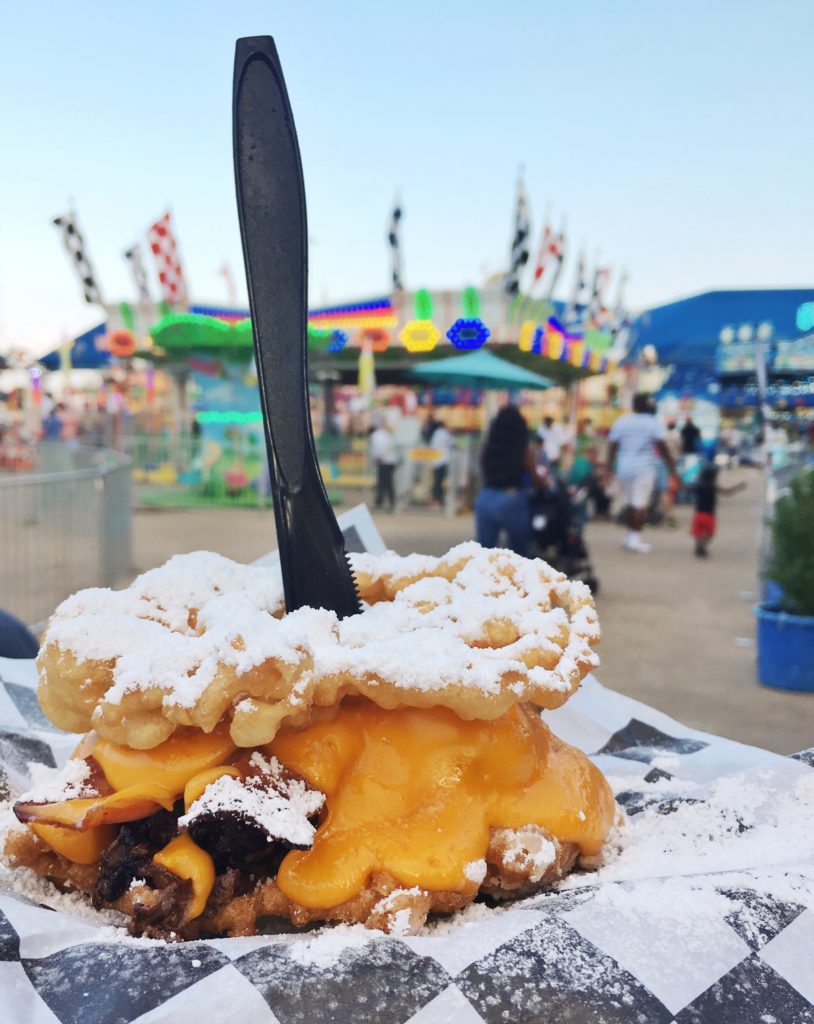 I just love the fair so much. It’s such a fun tradition full of yummy and oh so bad for you food. I took that queso burger down by myself. haha.
