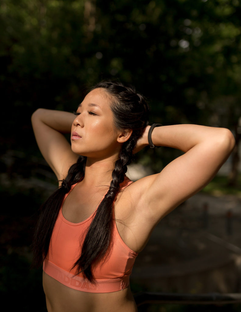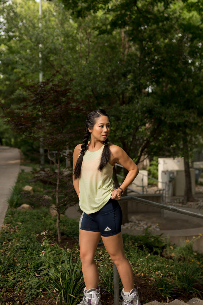 Want to take your workout outside? Roller skating is still a great cardio workout and another great option when looking to get some vitamin D. Katy Trail is such a great place for people watching as well as the energy from seeing everyone doing their thang. Zooming past folks on my skates makes being on the trail a whole lot more fun now. Adding more variety to my list of outdoor activities is definitely a plus. Plus, when you pick up on that breeze… it’s awesome. I would recommend hitting the trail in the early mornings or late evenings when it’s not so hot and I’d definitely wear something comfortable. Here I’m opted for bright and colorful look with adidas. I’m wearing the Four Inch Short Tights in Collegiate Navy, the Don’t Rest Alphaskin Sports Bra and the Performer Open Back Tank Top in Frozen Yellow.