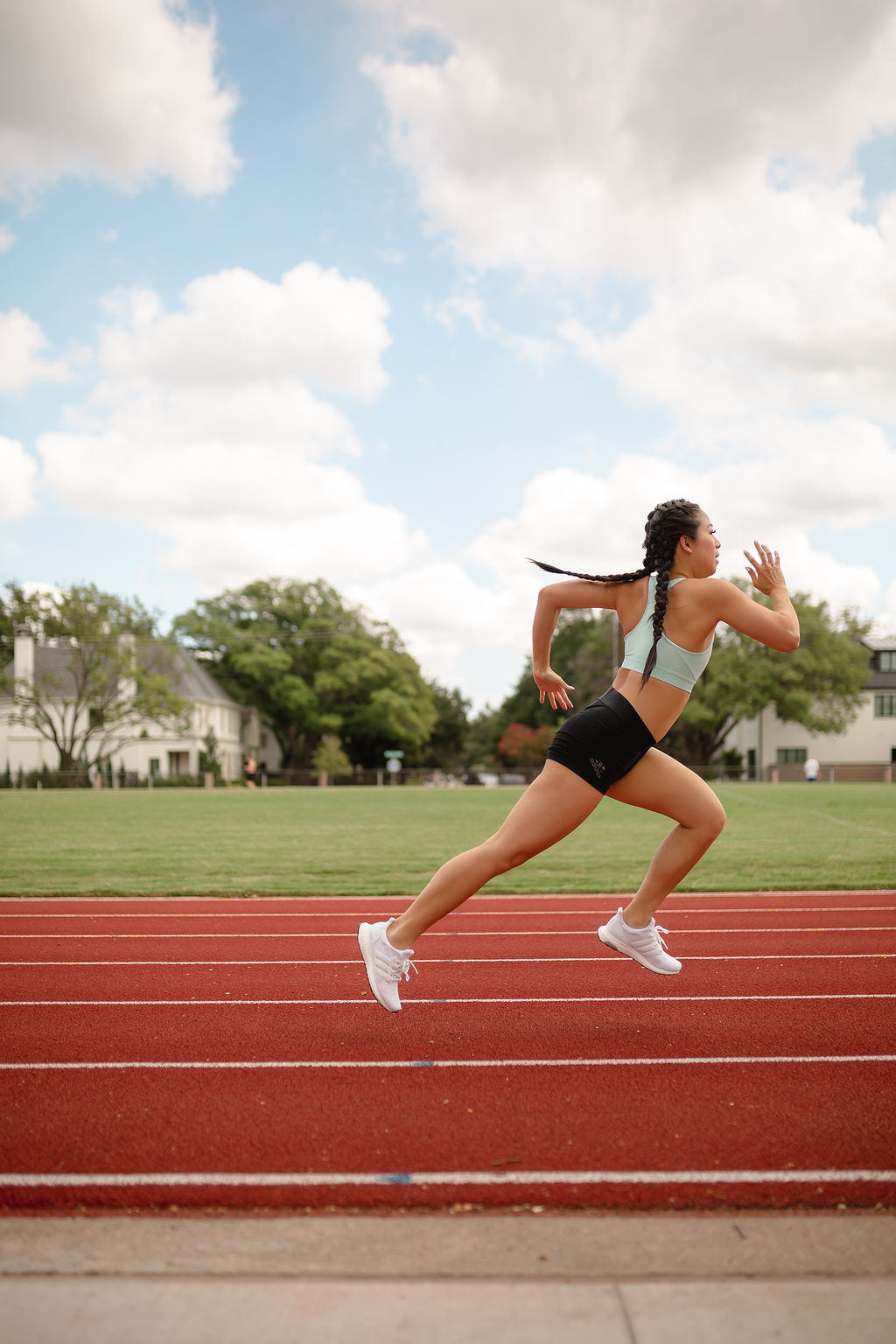 There’s a great running track in Dallas called Germany Park in University Park by SMU and it’s absolutely gorgeous and well kept. I also really loved how spacious it is and it’s motivating to see others out there walking or working out as well. I’ve never been an endurance runner, but I do love sprints. It’s explosive and demands all my energy in one burst. I’m also competitive and this is just SO my jam. Before getting into the sprint workout I have for you, you’ll need to warm up really well. The last thing anyone needs is to pull something because you aren’t warmed up enough.