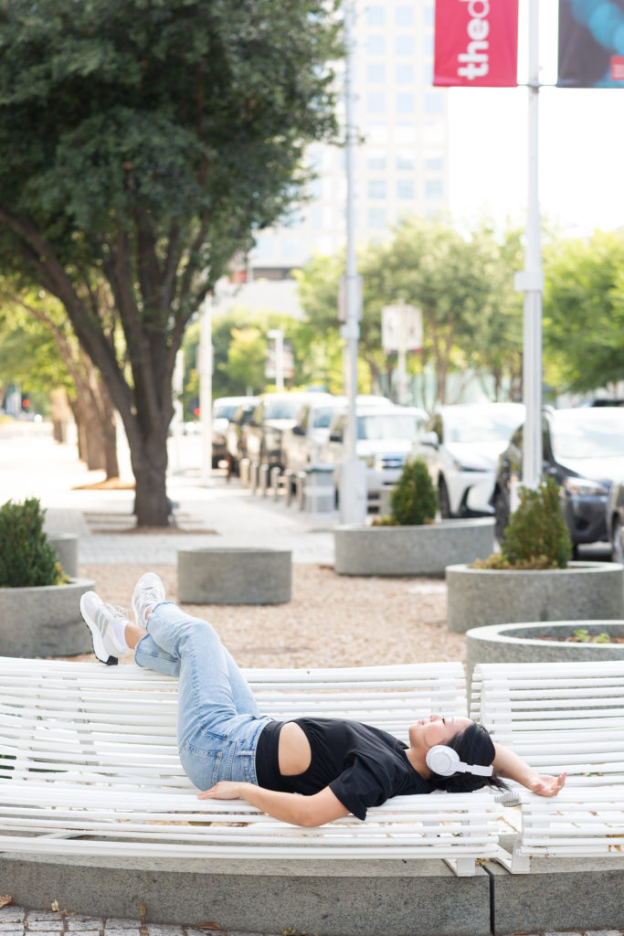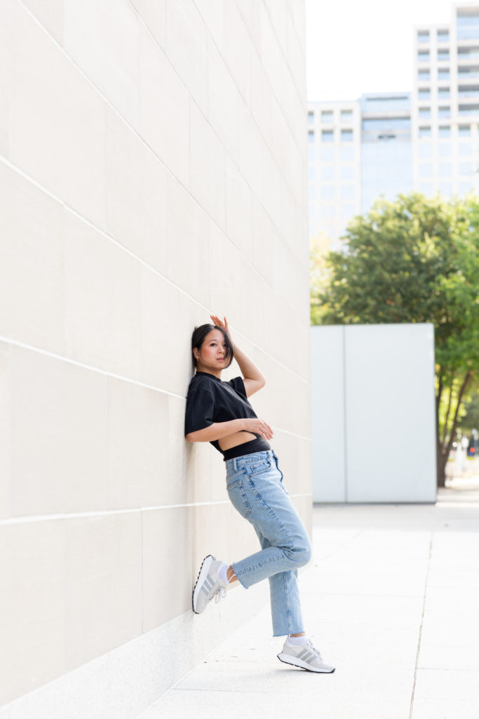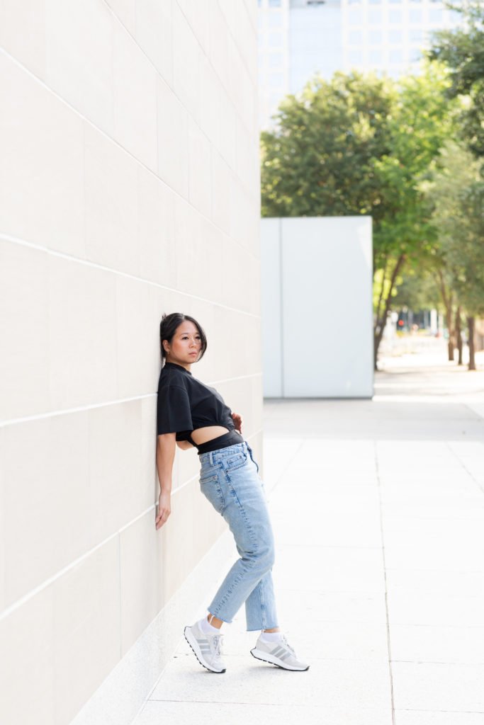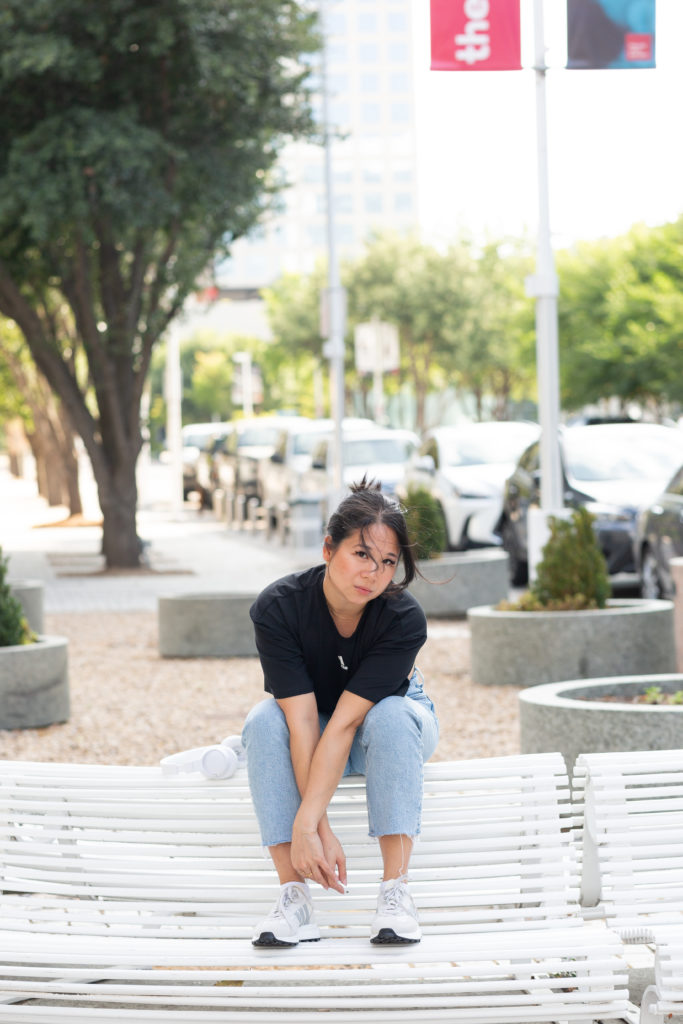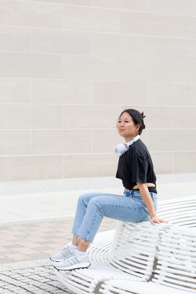 I’m a firm believer that you can feel your best in your best. Put on something that makes you feel comfortable and confident in your skin. Fashion is a way to express your personality and also a great way to strike up a conversation or connect over a shared love for style. Here I’m wearing an adidas power leotard that I’m obsessed with. Styling it with loose jeans and some dad shoes (like the adidas Retropy E5s), make this whole fit a vibe. Perfect for a coffee date or a night out at a concert.